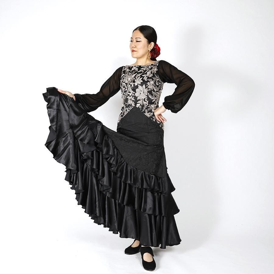 6 MAS033 刺繍ショール ブラック・シルバー系刺繍/シルバーフレコ<1点のみクリックポスト便にて配送>