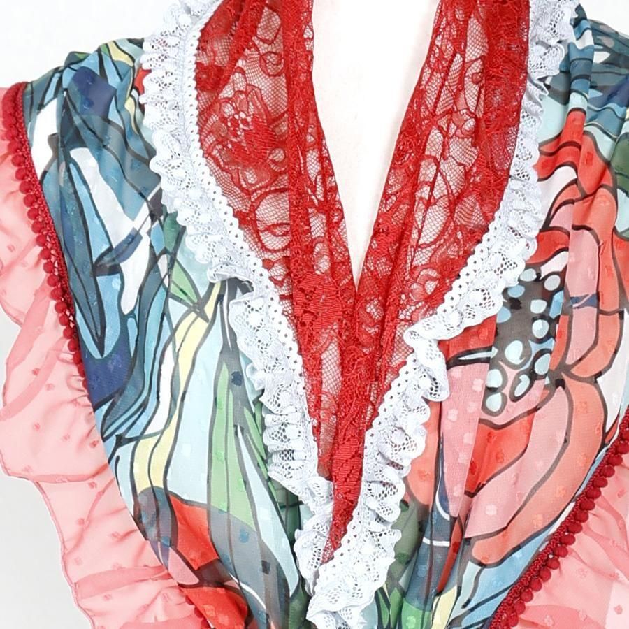 DO4104 ピキージョ・エプロン 2509K:コーラル花柄・レッドレース【☆1点もの☆】<1点のみにてクリックポスト配送>