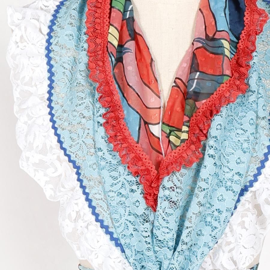 DO4104 ピキージョ・エプロン 2509P:コーラル花柄・ライトブルーレース【☆1点もの☆】<1点のみにてクリックポスト配送>