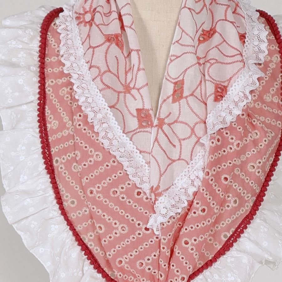 DO4104 ピキージョ・エプロン 2509T:コーラル・ホワイトレース【☆1点もの☆】<1点のみにてクリックポスト配送>