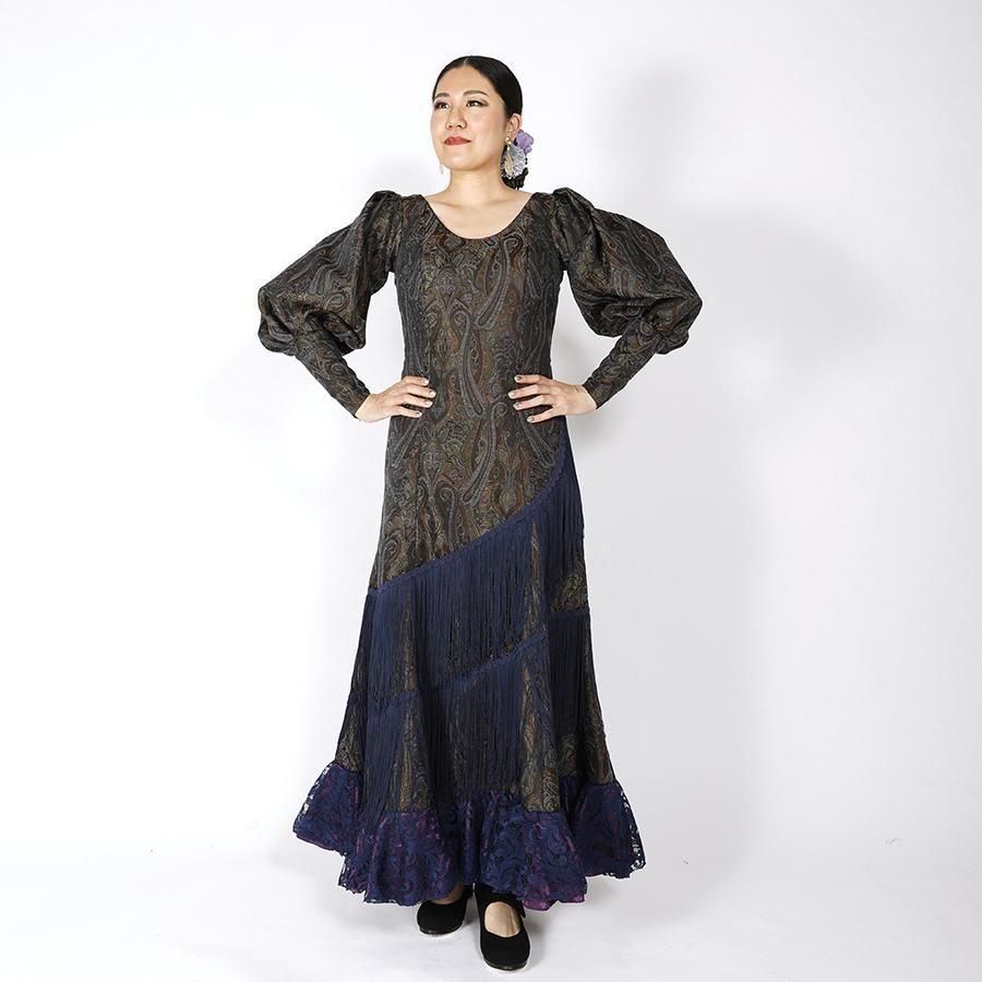 MT6031 フレコ付きワンピース<mariposa>ダークグリーンペイズリー・ネイビー L-140<☆1点もの☆>
