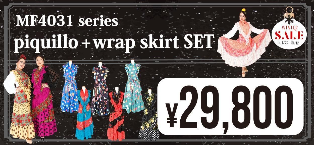 MF4031 巻きスカート・ピキージョ付き オレンジ花柄・水玉 F-95/100<現品限り!>