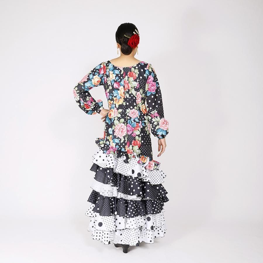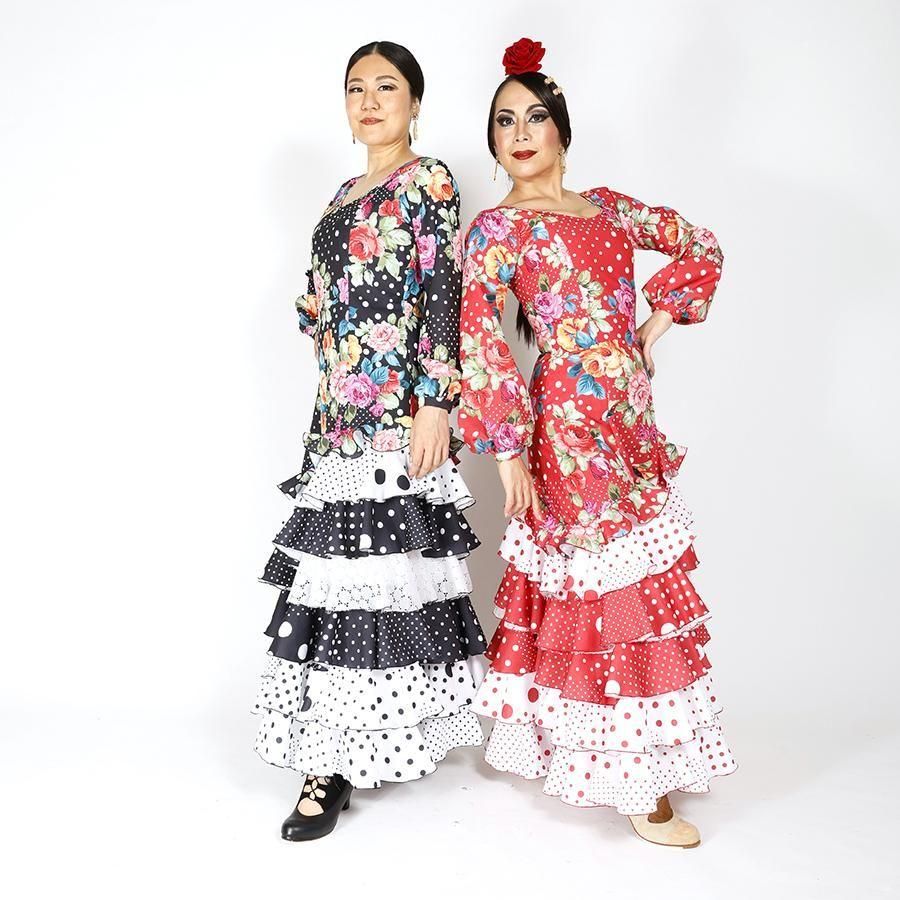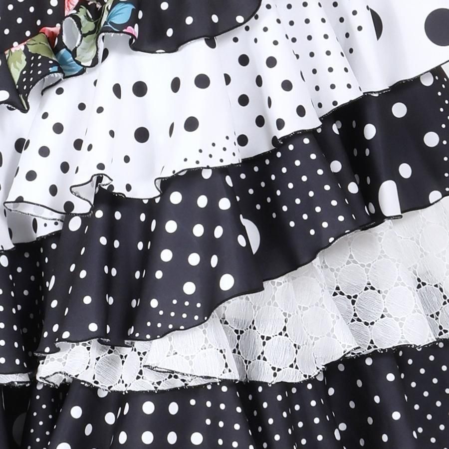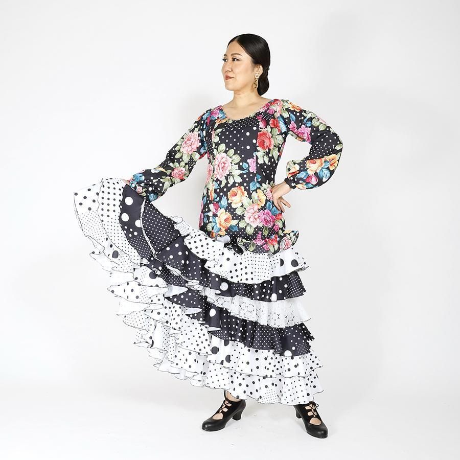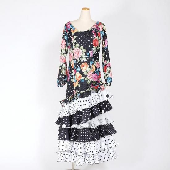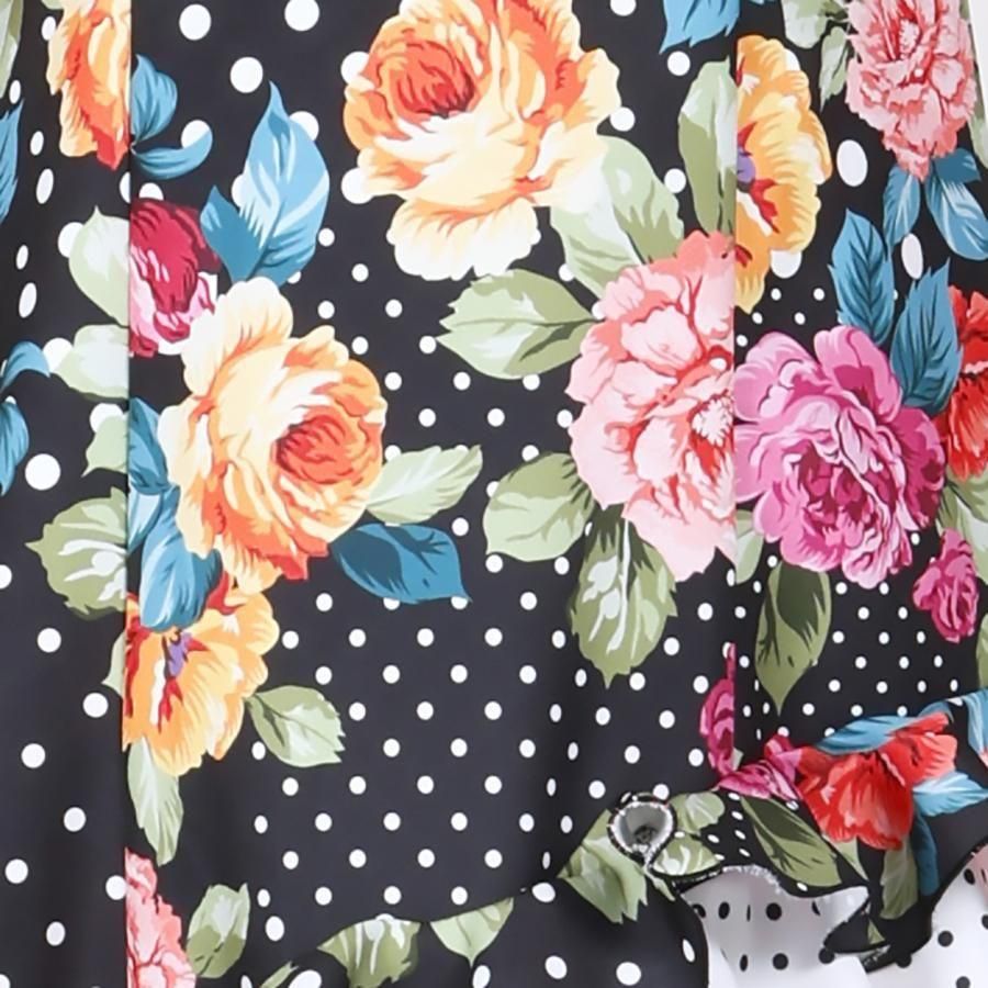 MT3031 7段斜めフリルワンピース<margarita>ブラック花柄・水玉<☆1点もの☆>2L-140