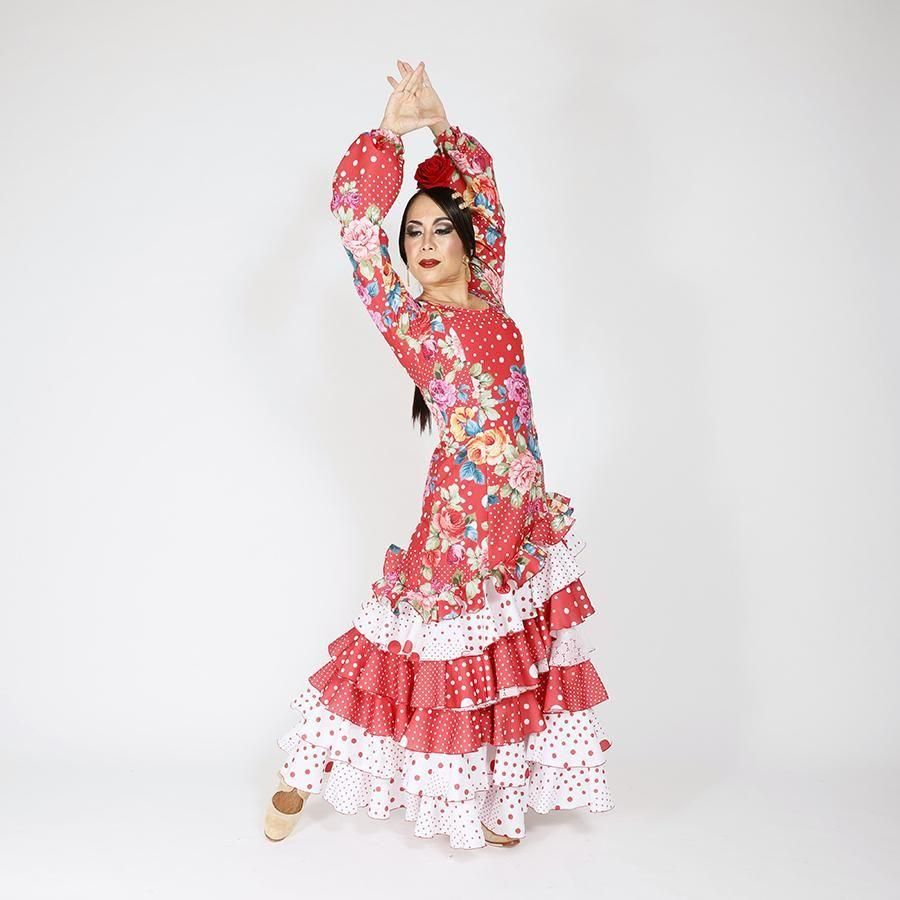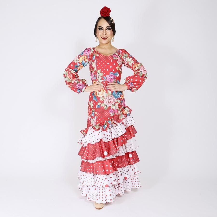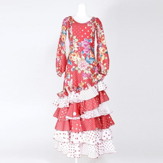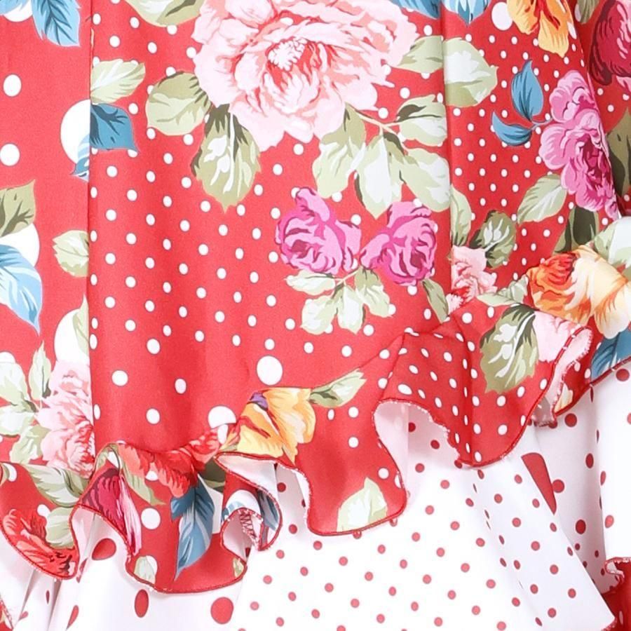 MT3031 7段斜めフリルワンピース<margarita>レッド花柄・水玉<☆1点もの☆>S-140