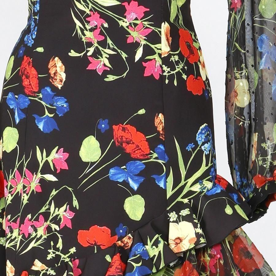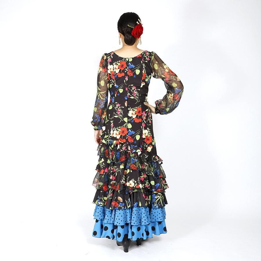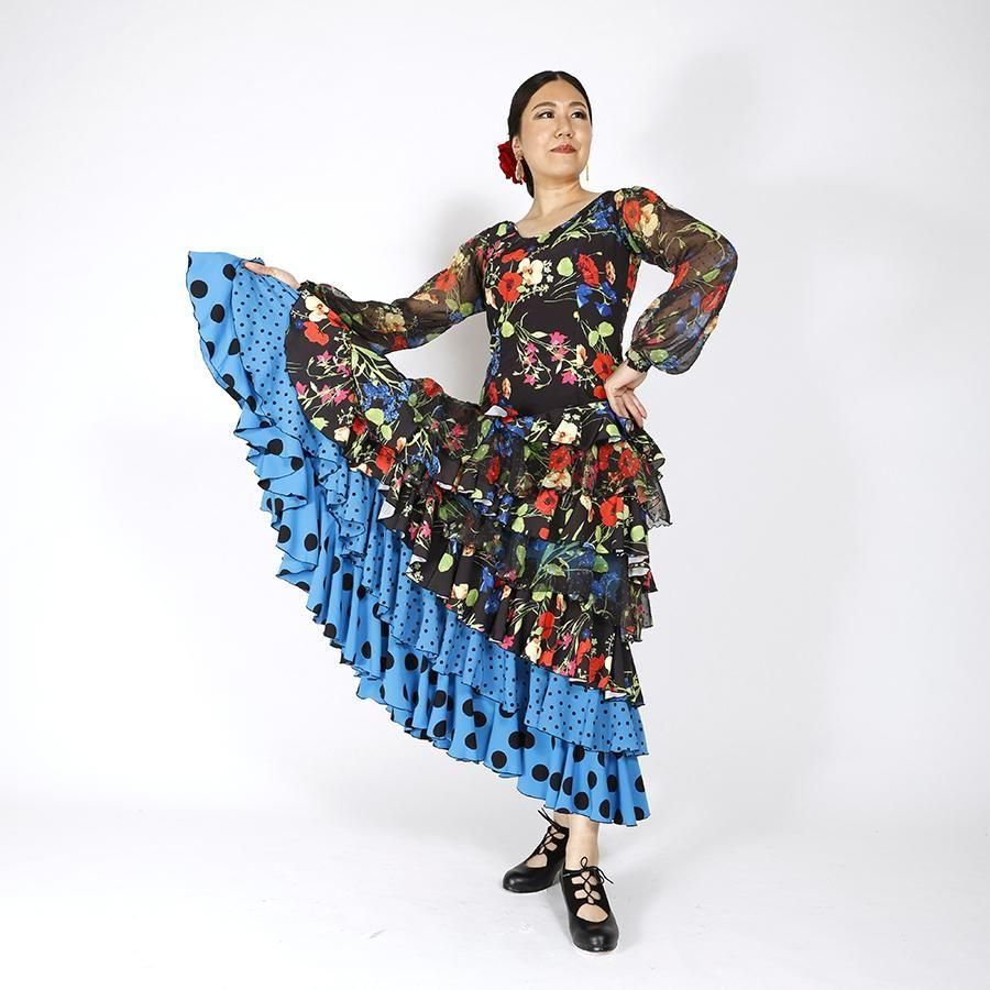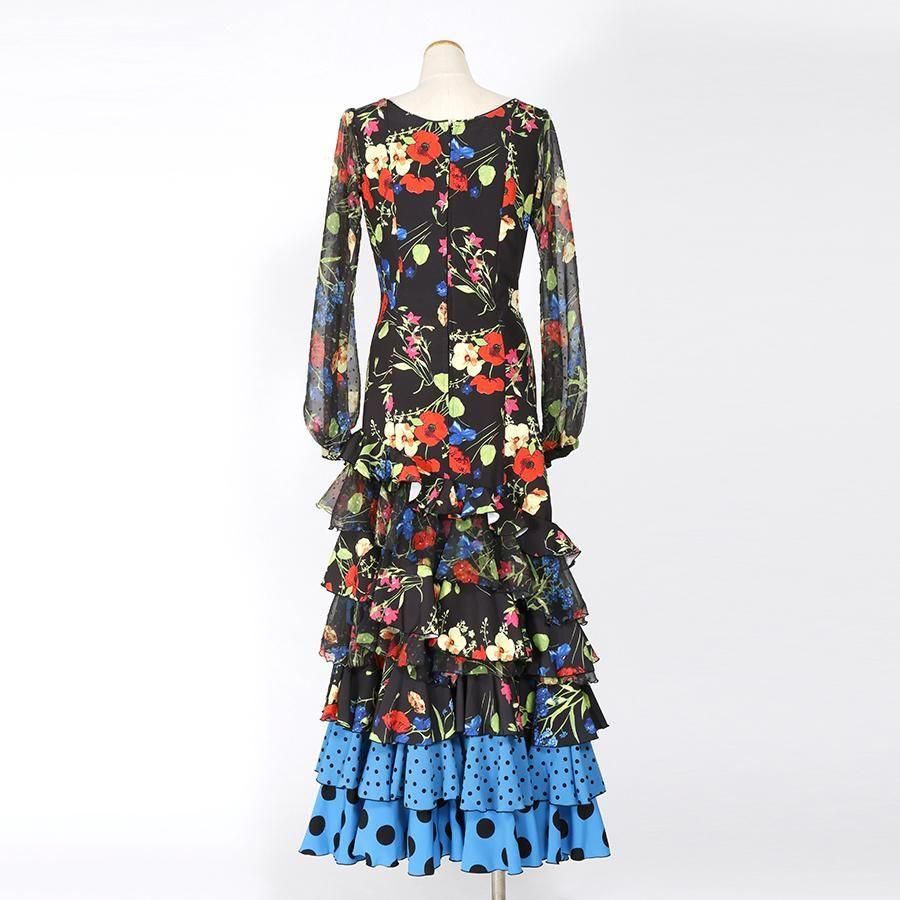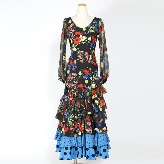 MT3031 7段斜めフリルワンピース<margarita>ブラック花柄・ブルー水玉<☆1点もの☆>L-140