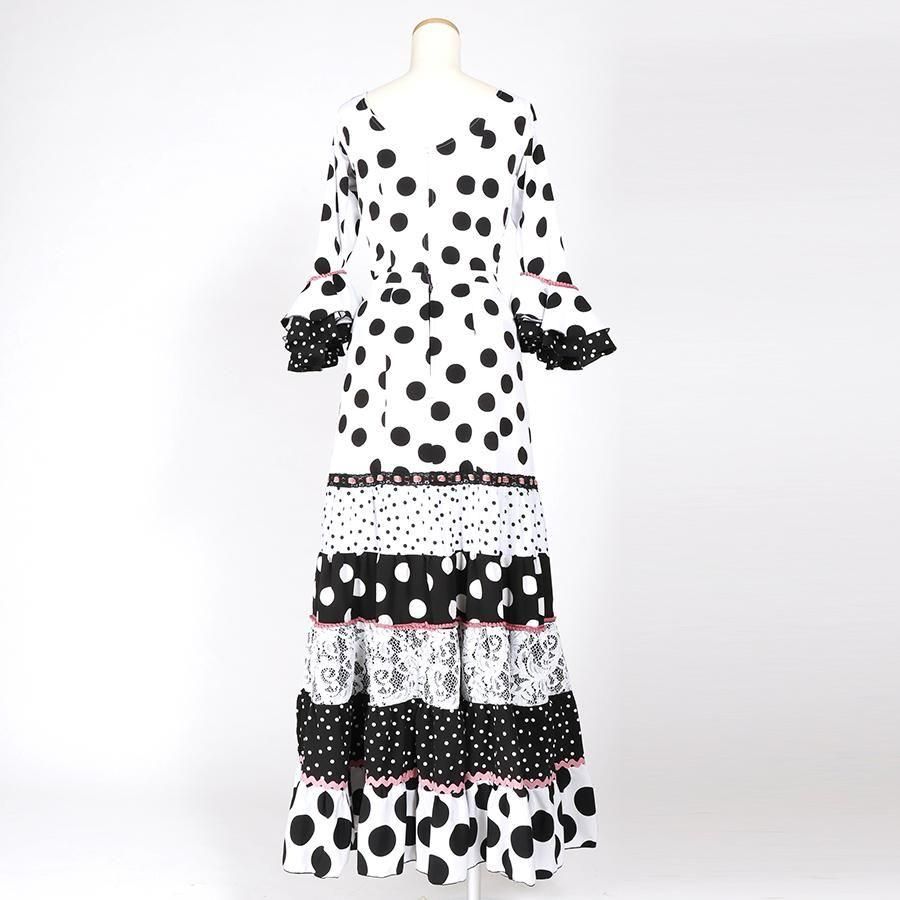 MS2068 バトーネック・ティアードスカート2P ホワイト・ブラック水玉 M-100 <現品限り!>【lunares】