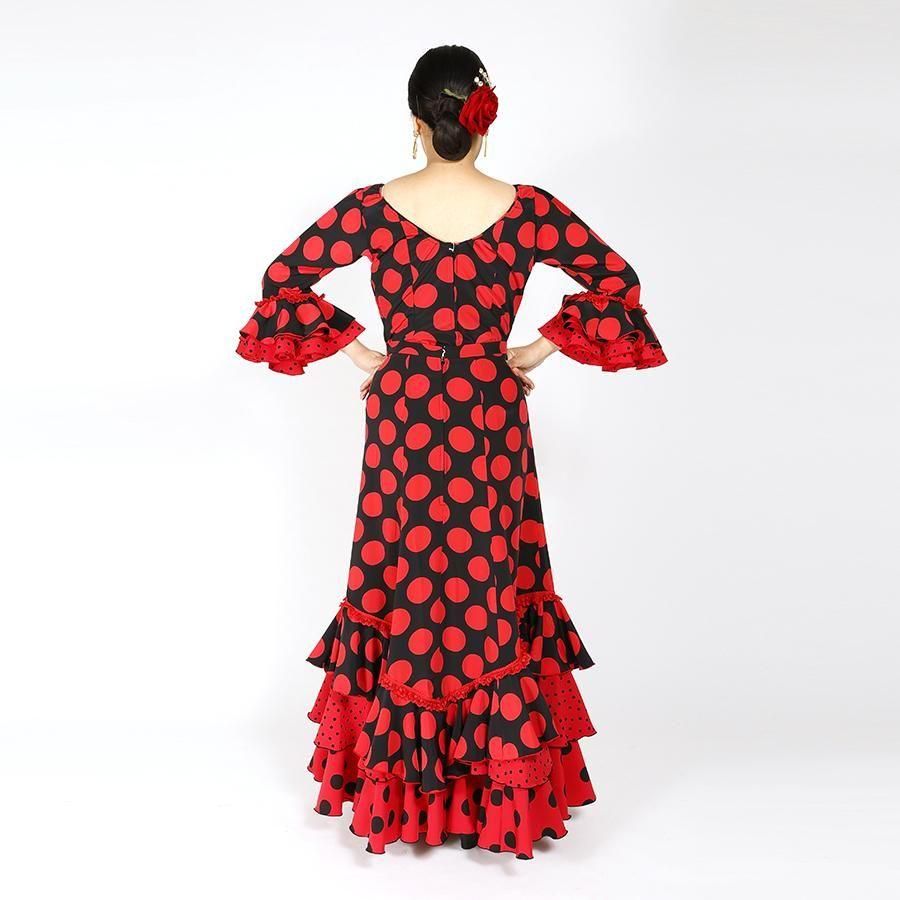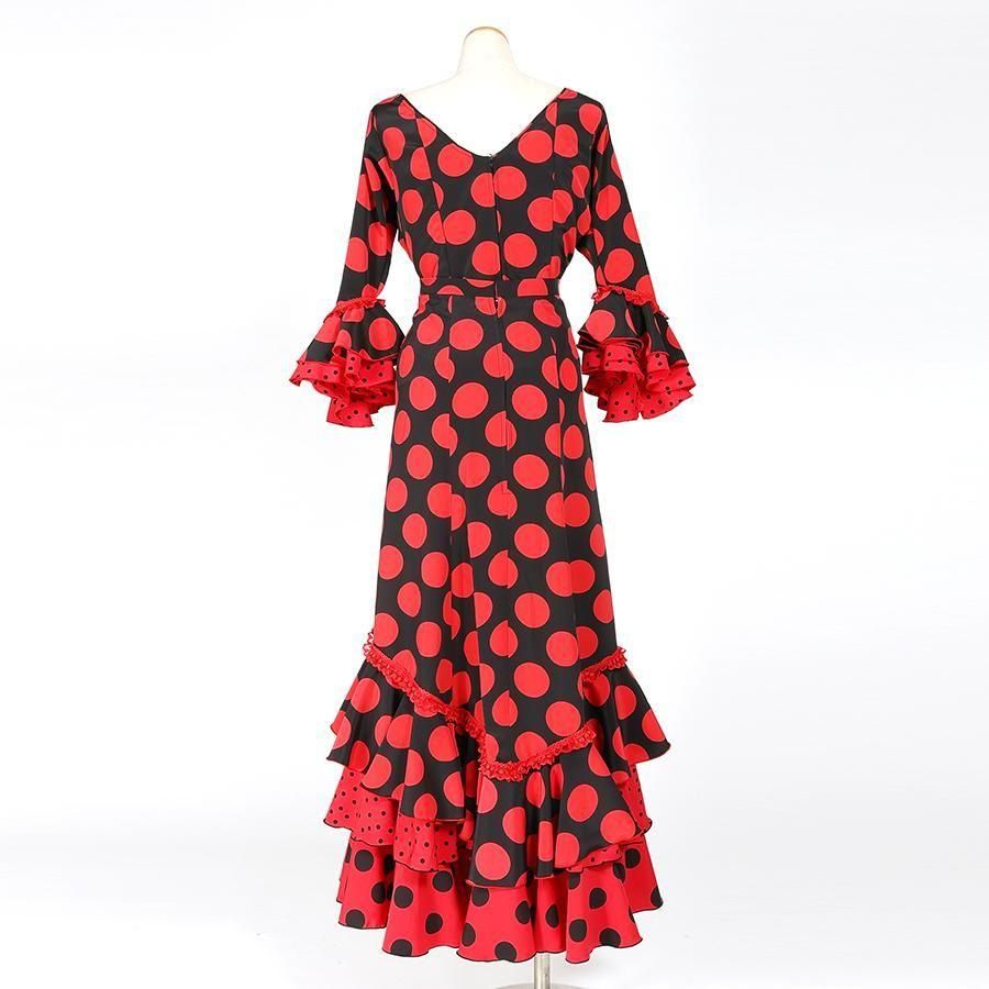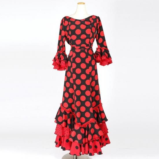 MS5025 バトーネック・V字フリルスカート2P ブラック・レッド水玉 2L-100 <☆1点もの☆>【lunares】