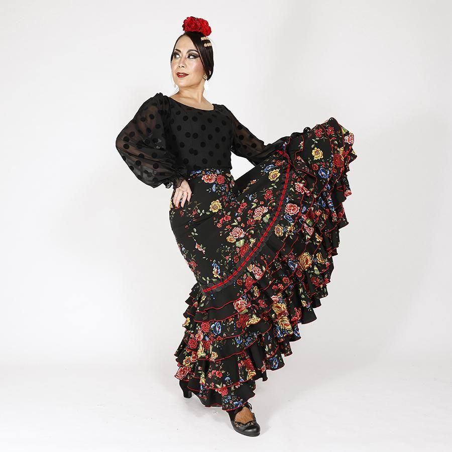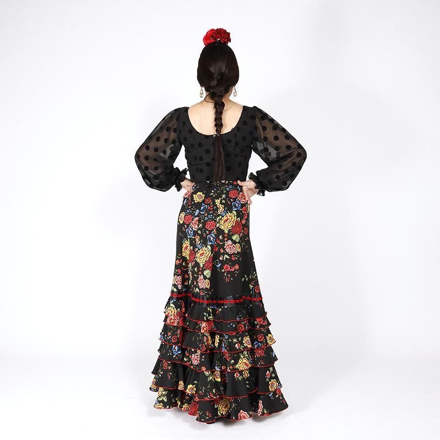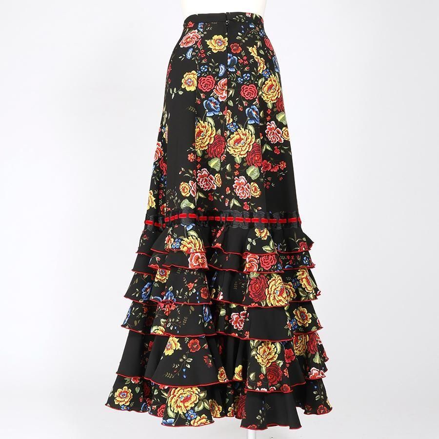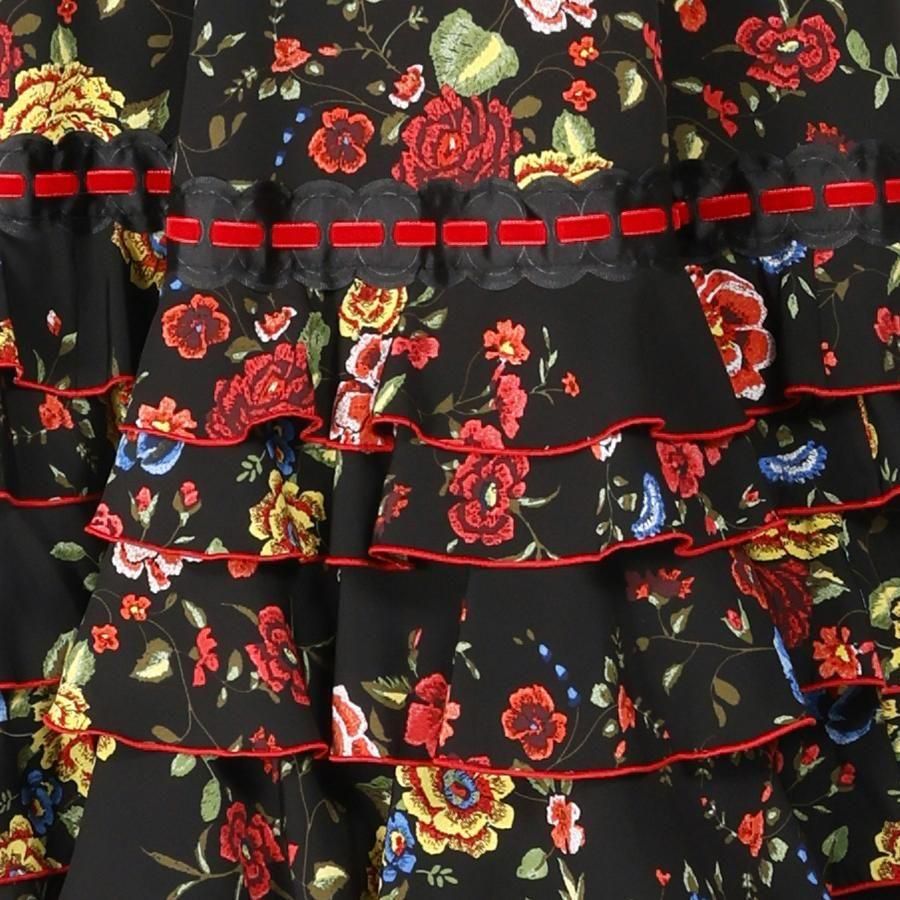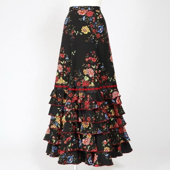 MF2021 6段フリルスカート<cerezo>ブラック花柄 M-100<現品限り!>