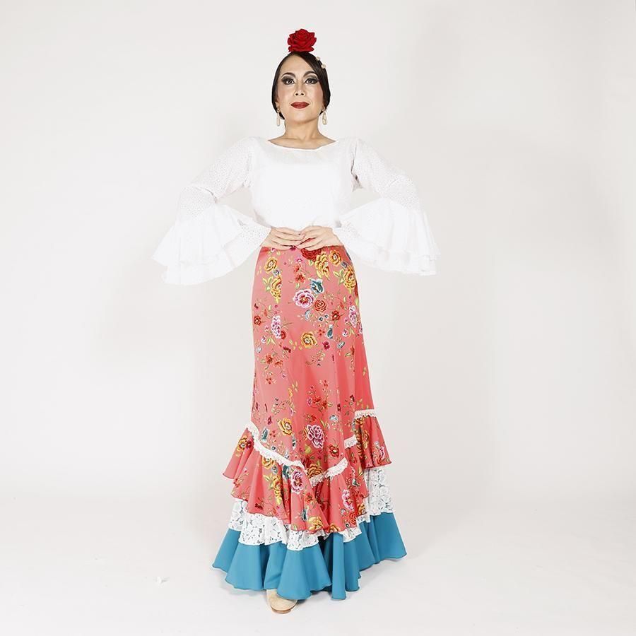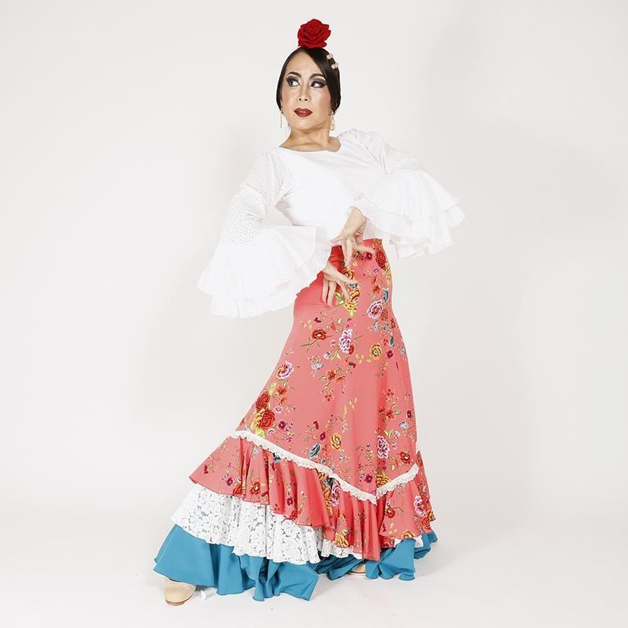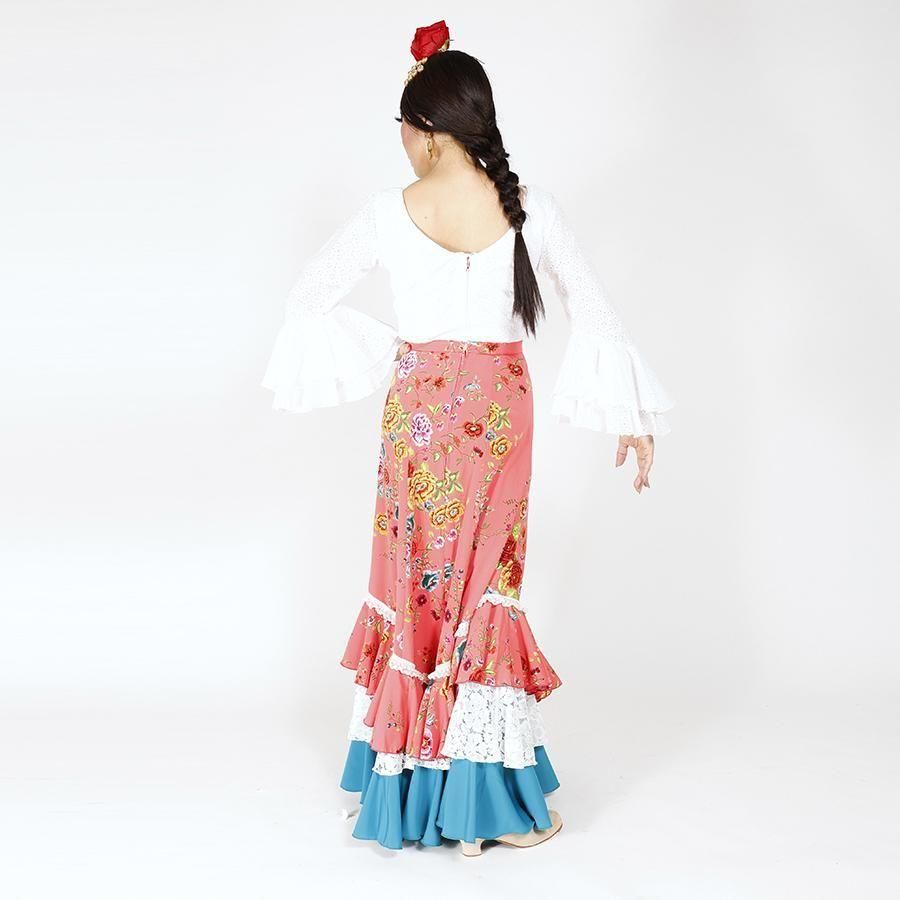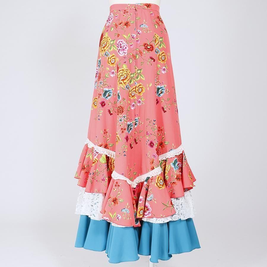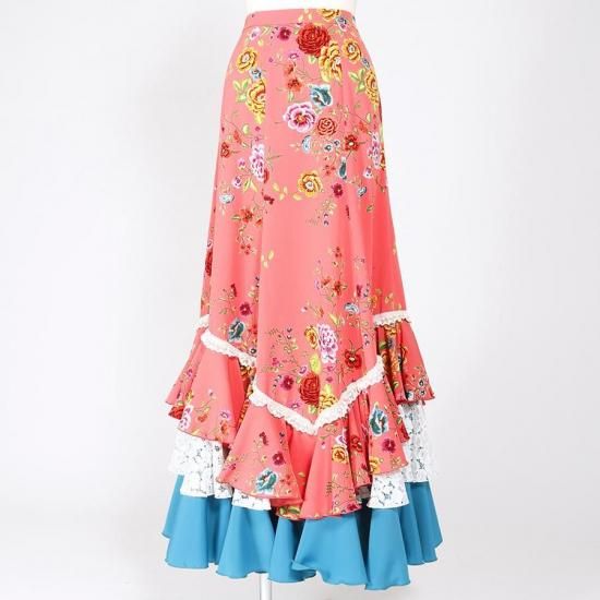 MF3051 V字フリルスカート<genciana>コーラル花柄<☆1点もの☆>M-100