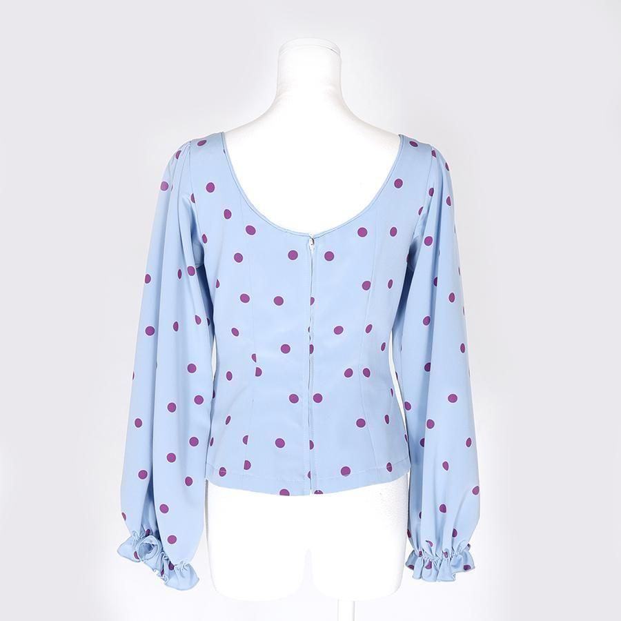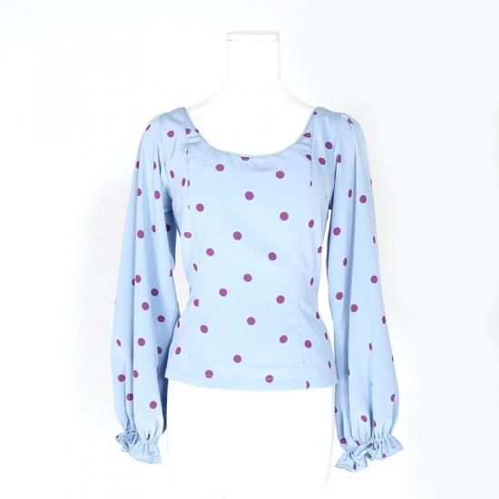 MB2012 ブラウス<manzano>ブルー・マゼンタ水玉 M<現品限り!><1点のみにてクリックポスト配送>
