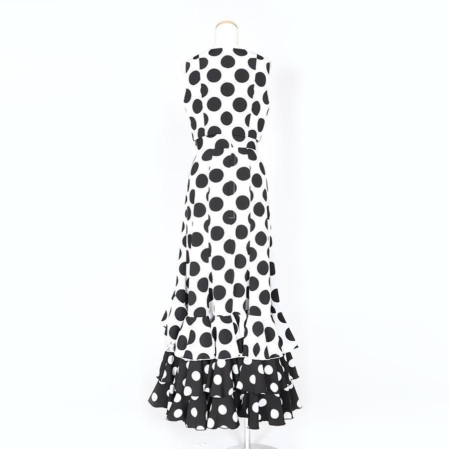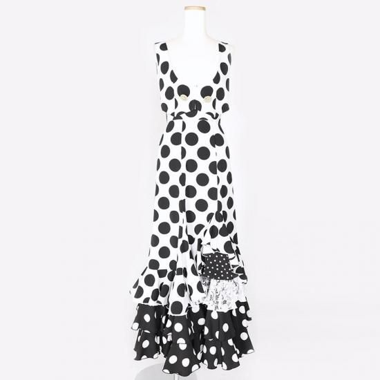 MS3041ベスト&ハイウエストスカートツーピース ホワイト・ブラック水玉 <☆1点もの☆>L-100【lunares】