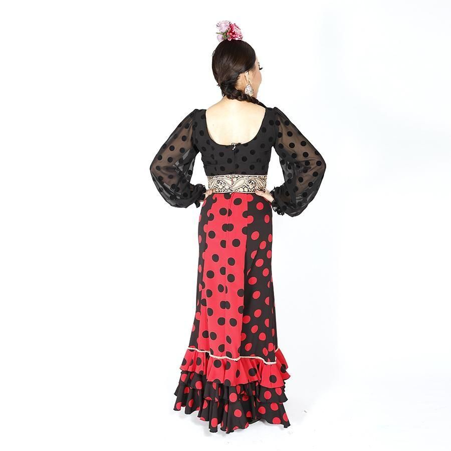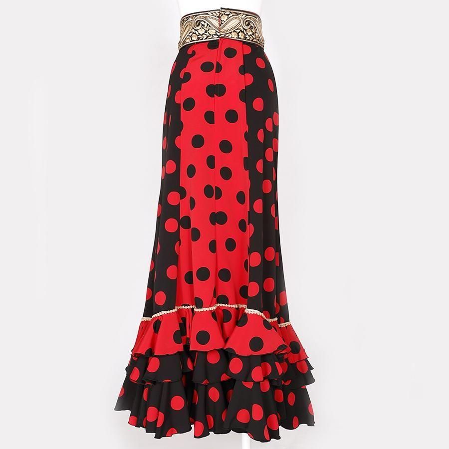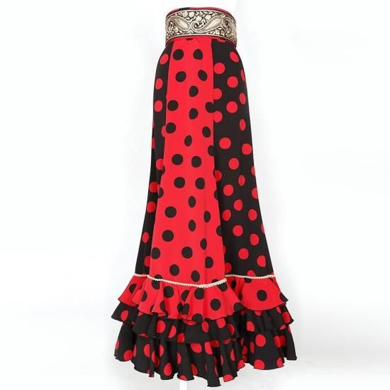 MF1013 ハイウエスト3段フリルスカート<caléndula>ブラック・レッド水玉<☆オーダー☆可!>【lunares】M-100