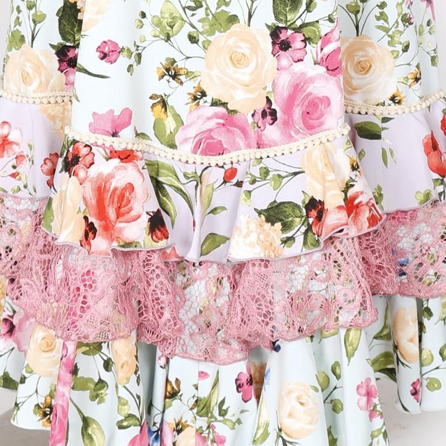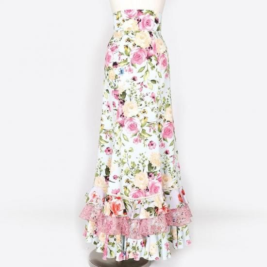 MF1013 ハイウエスト3段フリルスカート<caléndula>ライトブルー花柄 2L-100<☆1点もの☆>