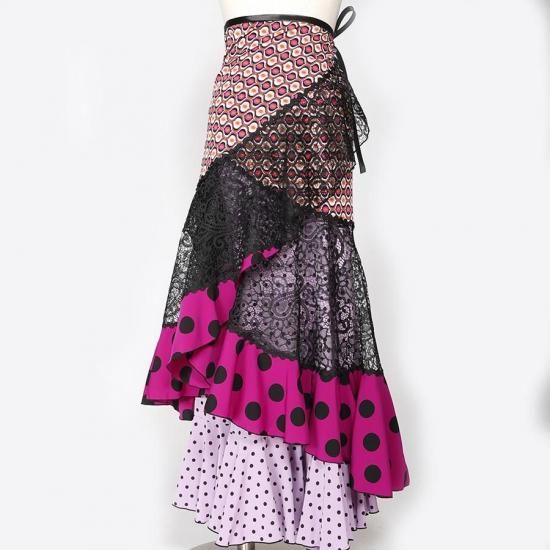 MQF015巻きスカートB ☆1点もの☆系2509T:ブラック・パープル<1点のみにてクリックポスト配送>