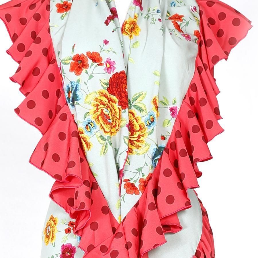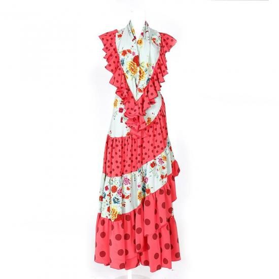 MF4031 巻きスカート・ピキージョ付き ライトグリーン花柄・コーラル水玉 F-100<現品限り!>