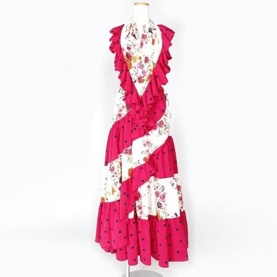 MF4031 巻きスカート・ピキージョ付き ホワイト花柄・ピンク水玉 F-100<現品限り!>