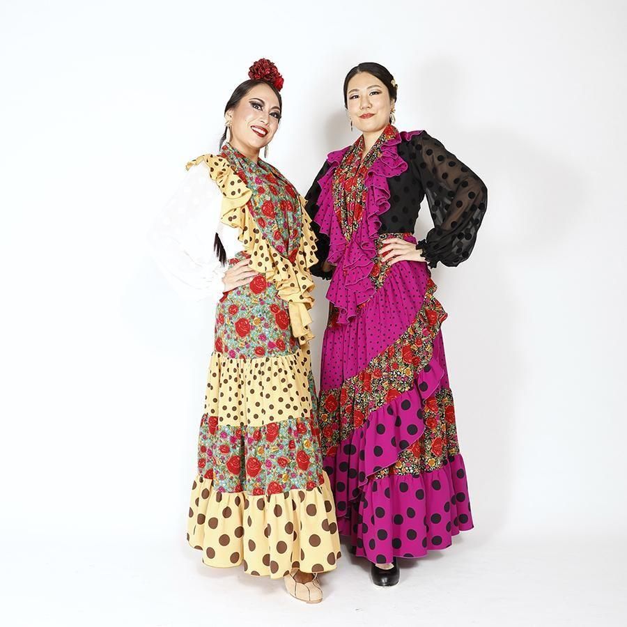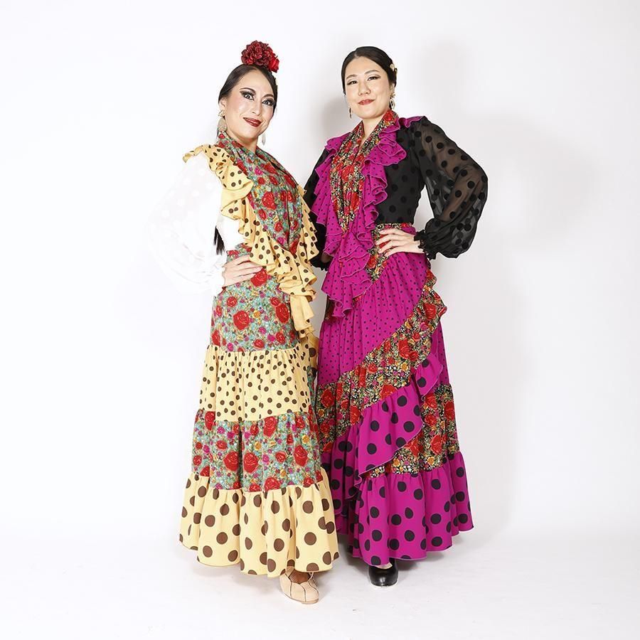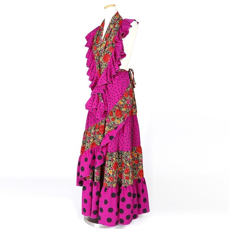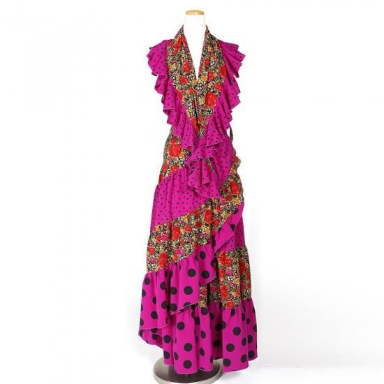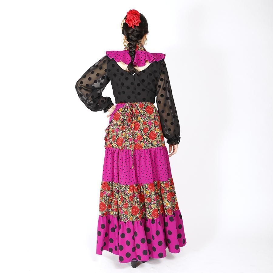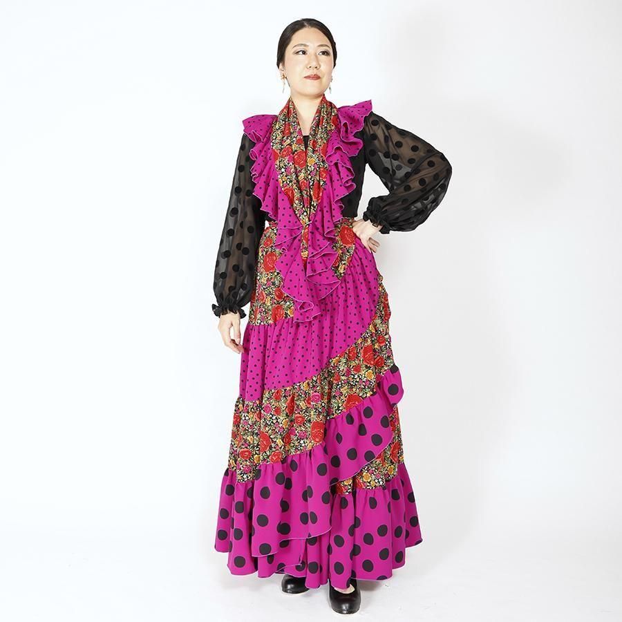MF4031 巻きスカート・ピキージョ付き ブラック花柄・パープル水玉 F-100<現品限り!>