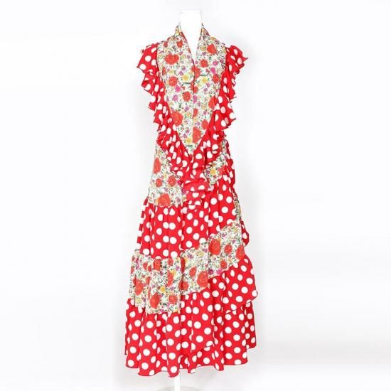 MF4031 巻きスカート・ピキージョ付き ホワイト花柄・レッド水玉 F-95<現品限り!>