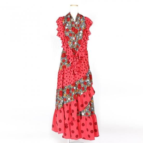MF4031 巻きスカート・ピキージョ付き ブルー花柄・コーラル水玉 F-100<現品限り!>