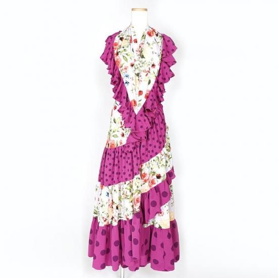 MF4031 巻きスカート・ピキージョ付き ライラック花柄・パープル水玉 F-100<現品限り!>