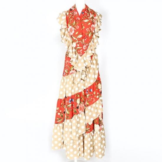 MF4031 巻きスカート・ピキージョ付き コーラル花柄・ベージュ水玉 F-95<現品限り!>