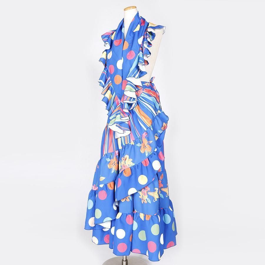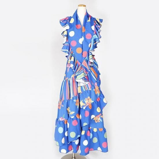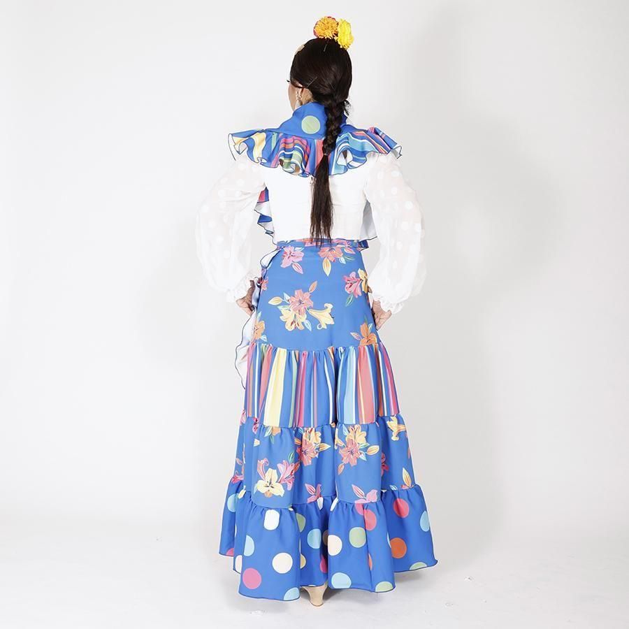 MF4031 巻きスカート・ピキージョ付き ブルー花柄・ストライプ・水玉 F-95/100<現品限り!>