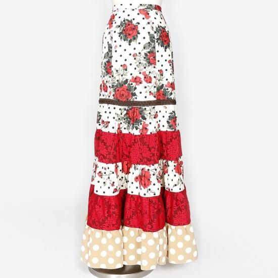 MF2011ティアードスカート<lantana >アイボリー・レッド花柄<☆1点もの☆>2L-100