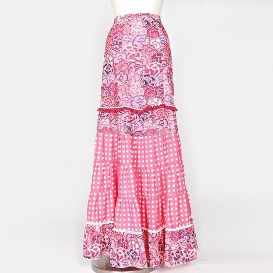 MF2011ティアードスカート<lantana >ピンク花柄・水玉<☆1点もの☆>2L-100