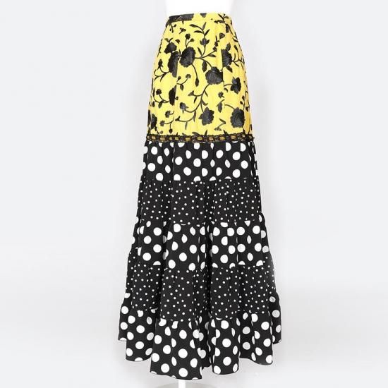 MF2011ティアードスカート<lantana >マスタード・ブラック刺繍<☆1点もの☆>M-100
