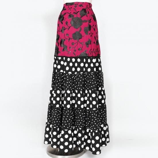 MF2011ティアードスカート<lantana >グレープ・ブラック刺繍<☆1点もの☆>2L-100