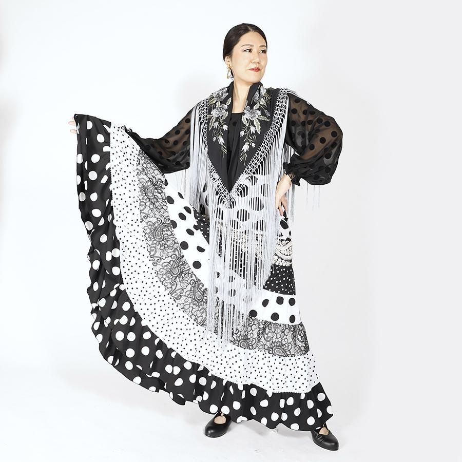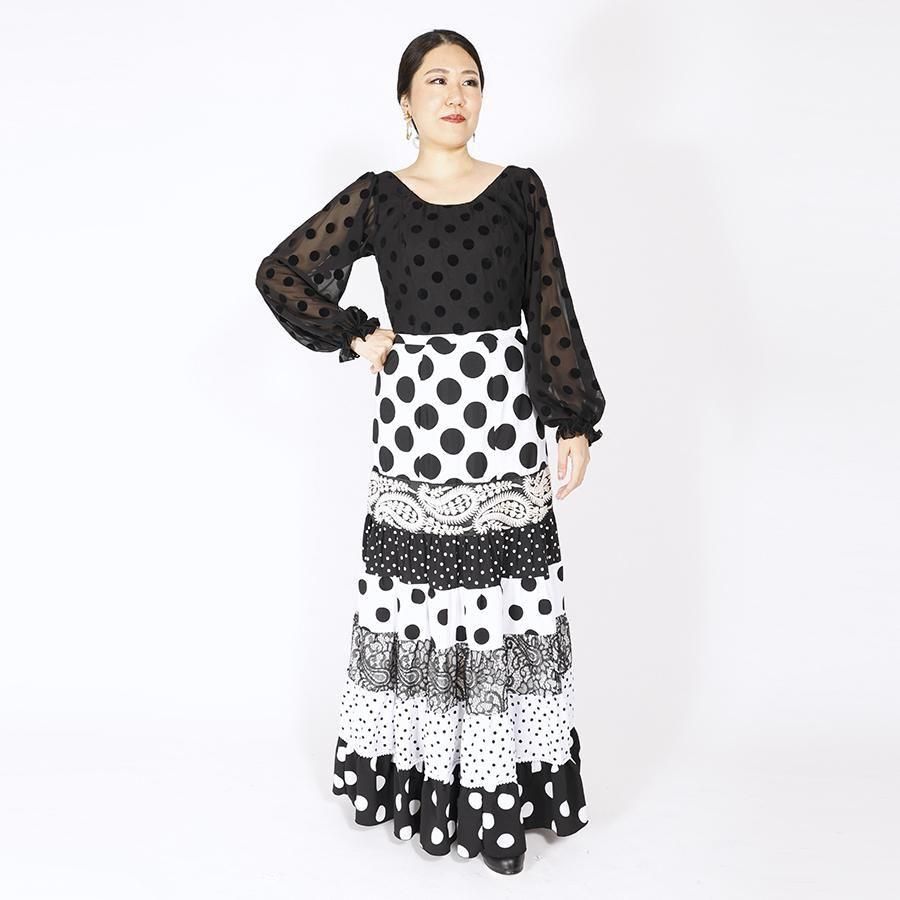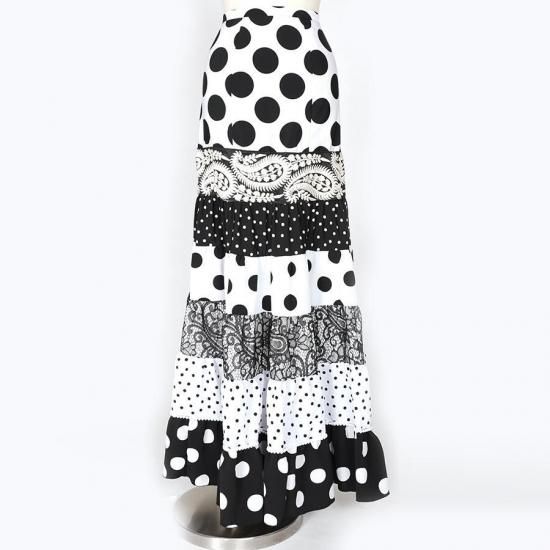 MF2011ティアードスカート<lantana >ホワイト・ブラック水玉<☆1点もの☆>2L-100【lunares】