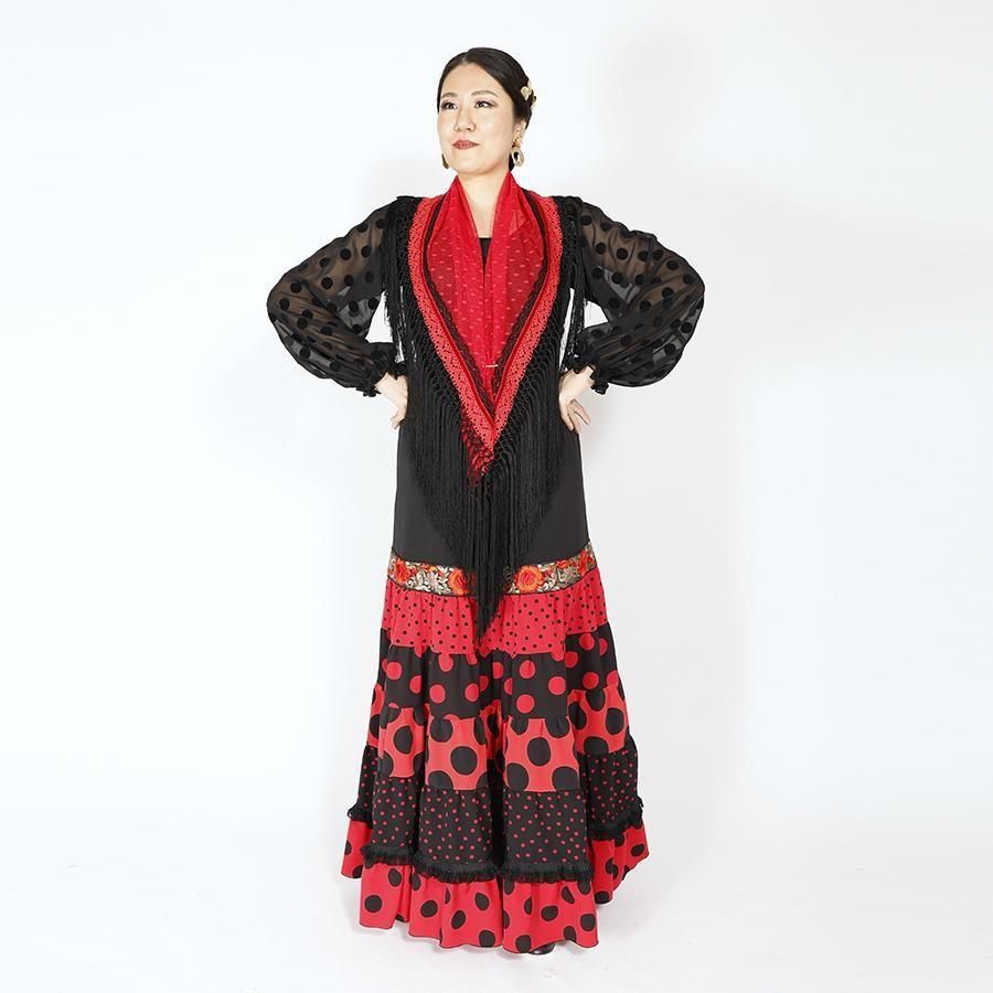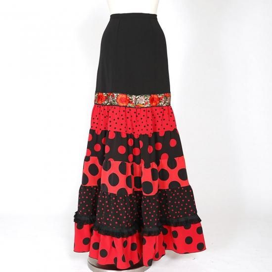 MF2011ティアードスカート<lantana >ブラック/レッド・ブラック水玉<☆1点もの☆>2L-100【lunares】