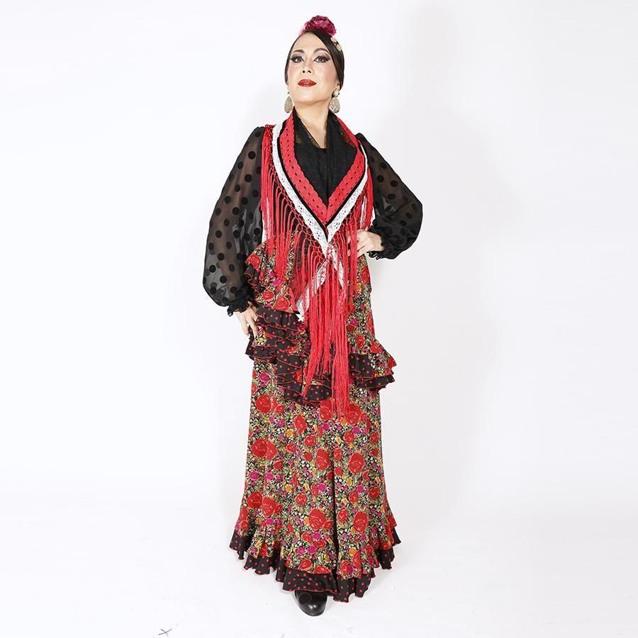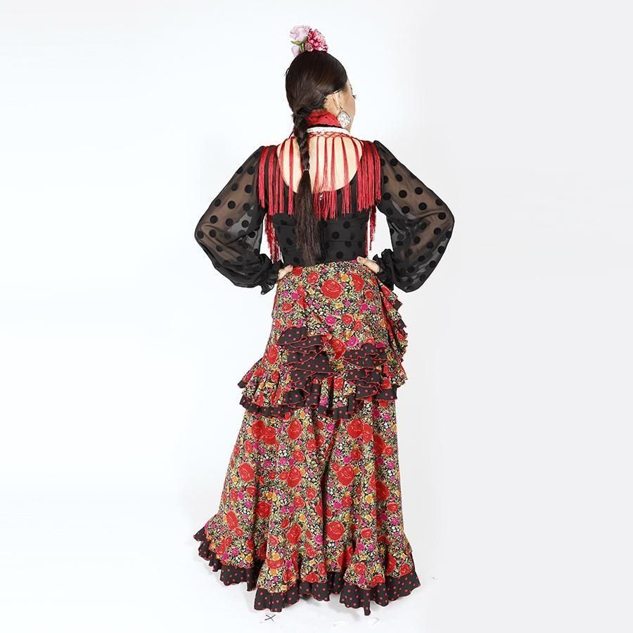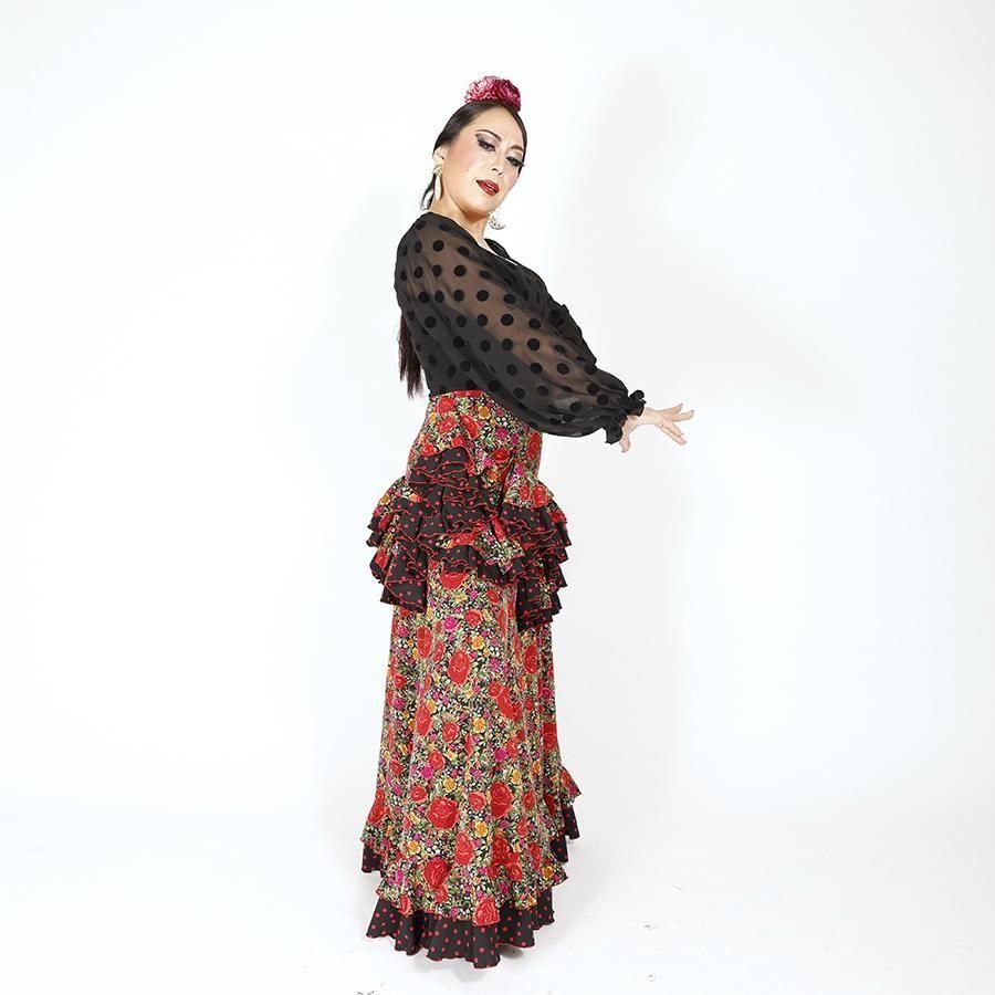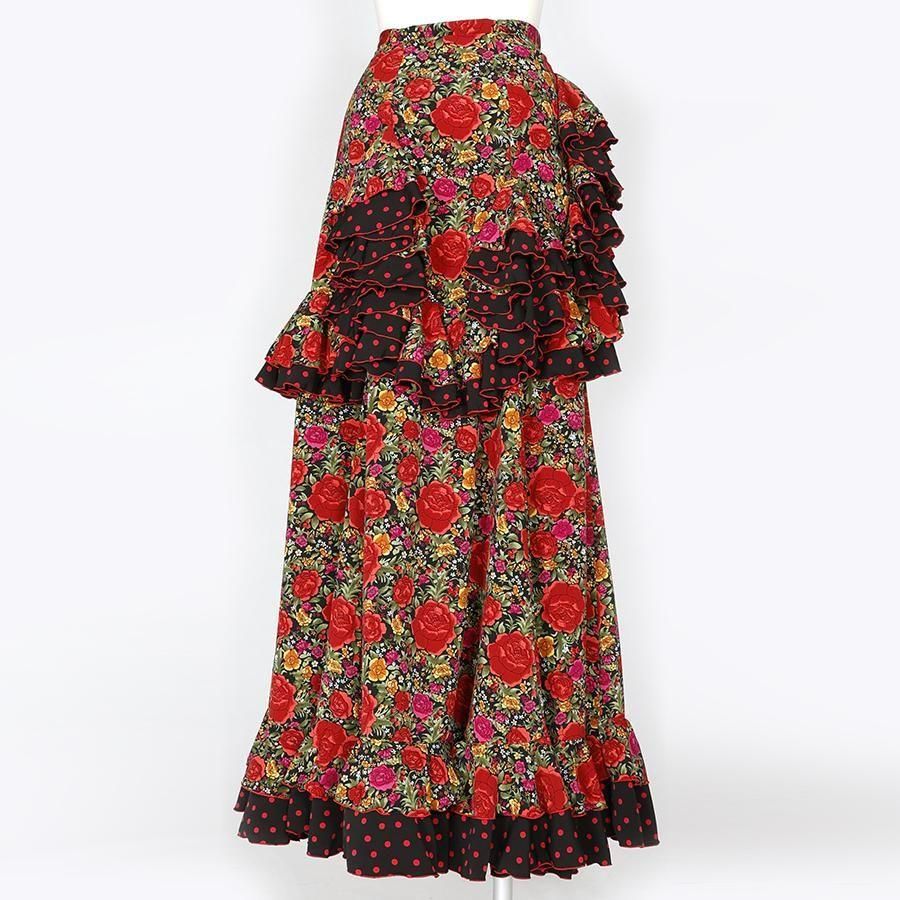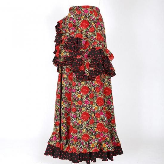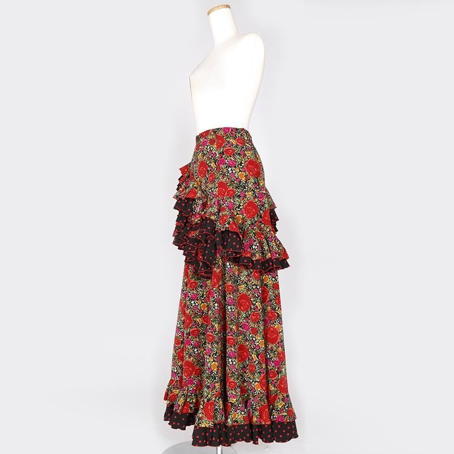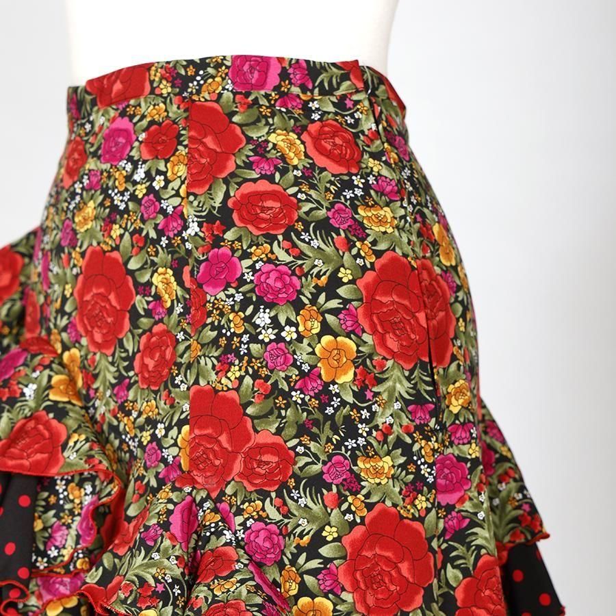 MF6021 縦フリルスカート ブラック花柄・水玉<☆1点もの☆>M-100