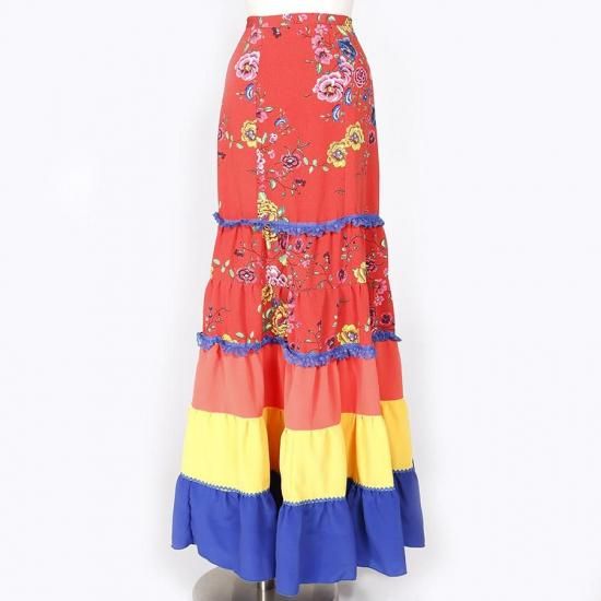 MF2011ティアードスカート<lantana >レッド花柄・イエロー・ブルー<☆1点もの☆>2L-100