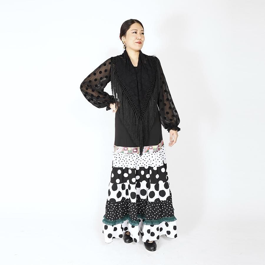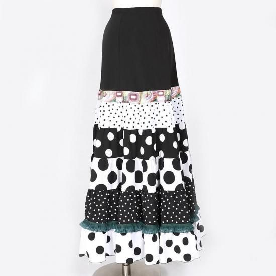 MF2011ティアードスカート<lantana >ブラック/ホワイト・ブラック水玉<☆1点もの☆>【lunares】L-100