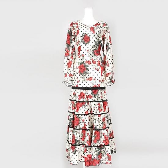 MT2041 ティアードワンピース<ipomea> アイボリー花柄<☆1点もの☆>L-140