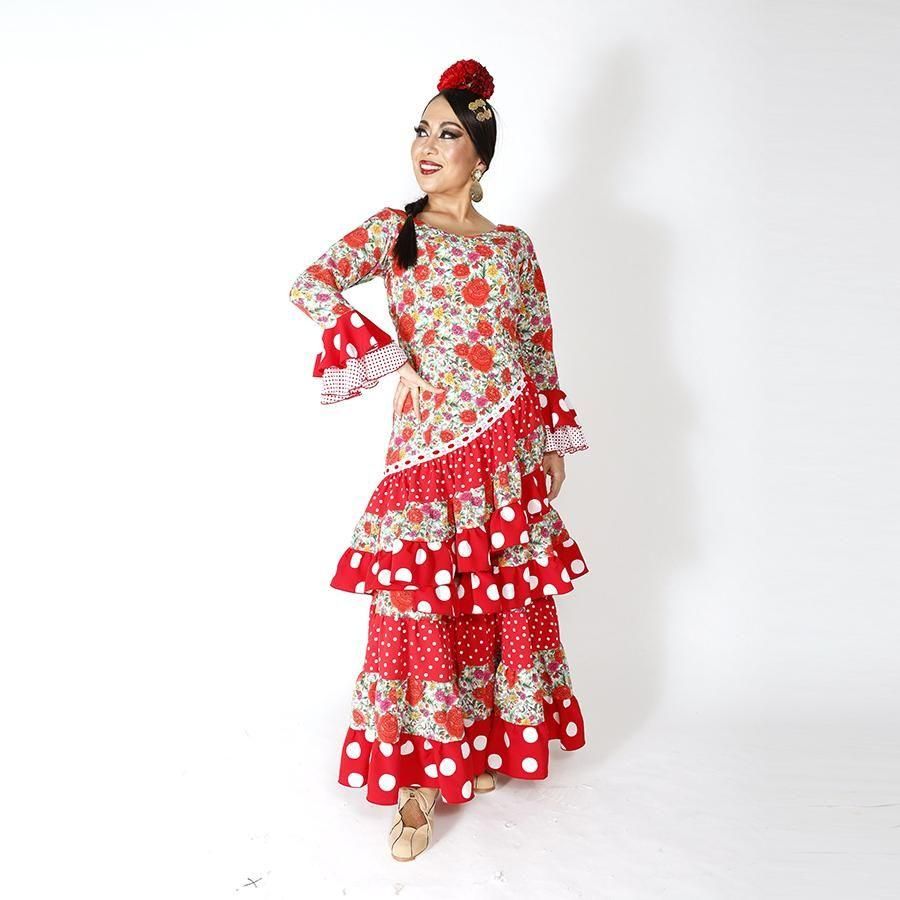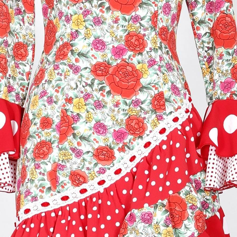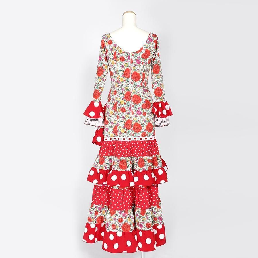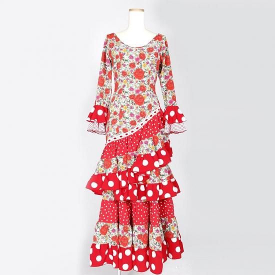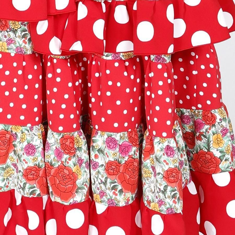 MT2042 ティアードフリルワンピース<caspia>花柄/レッド・ホワイト水玉 M-140<☆1点もの☆>