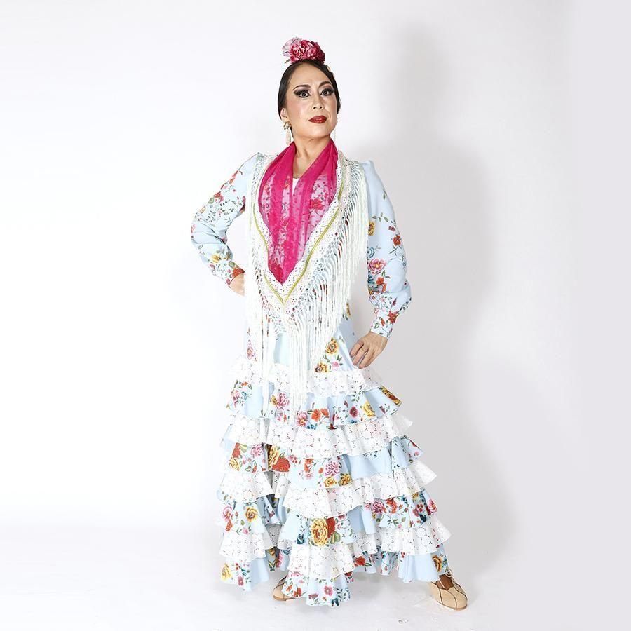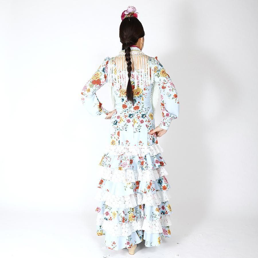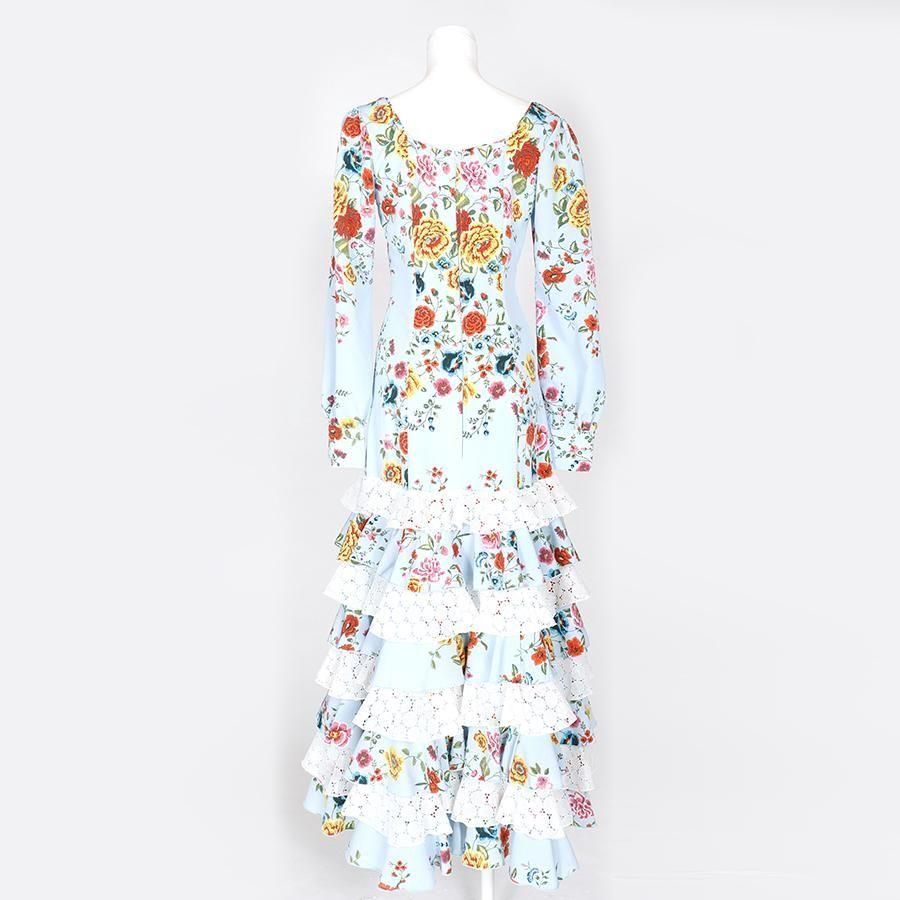 MT5011 カフス袖・8段フリルワンピース<geranio>ライトブルー花柄<☆1点もの☆> M-140