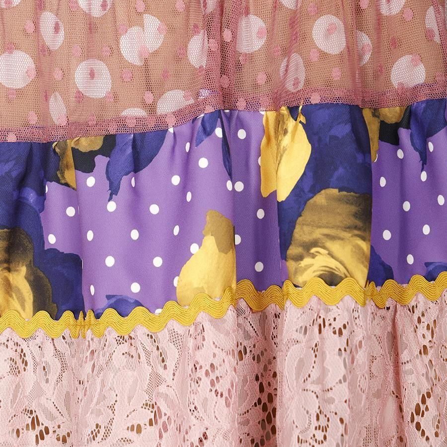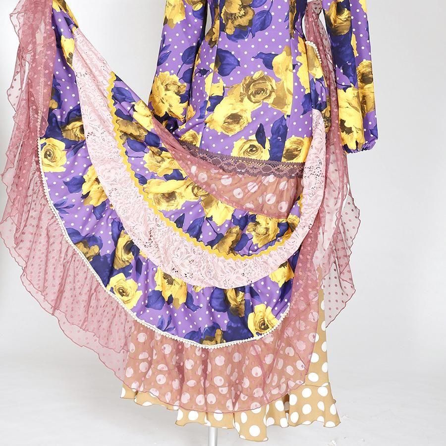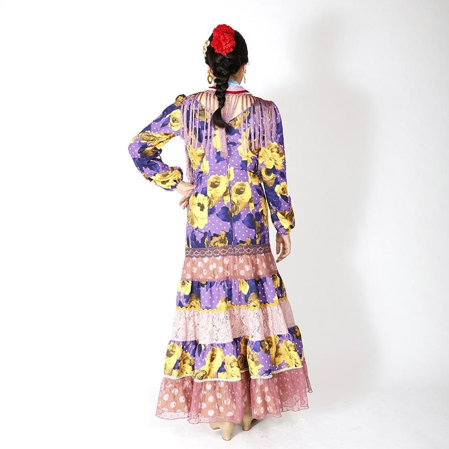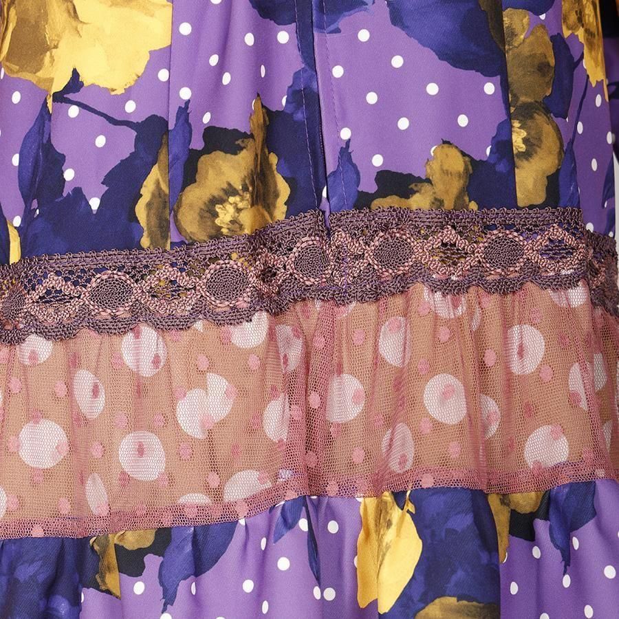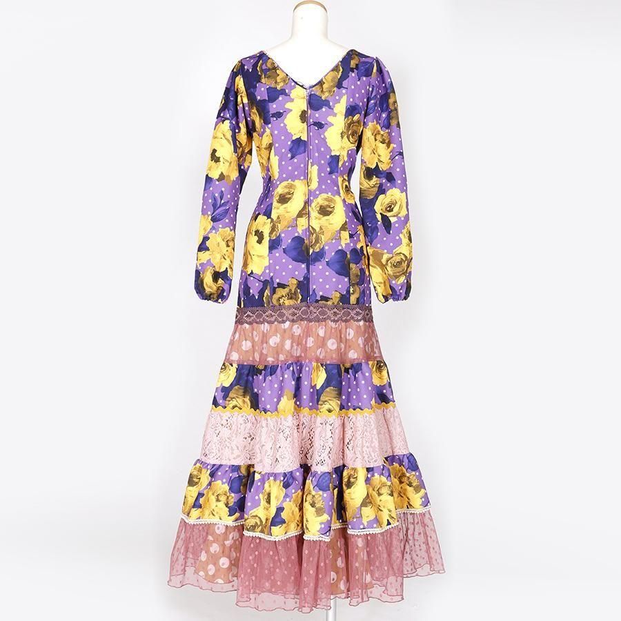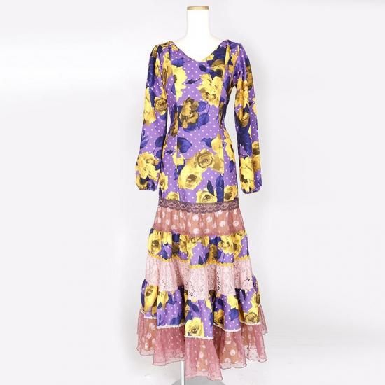 MT2043 ティアードワンピース ペチコート付<verónica>パープル花柄 L-140 <☆1点もの☆>