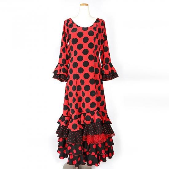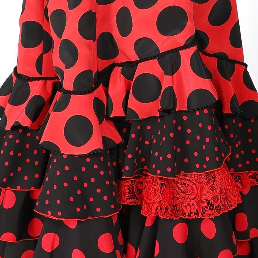 MT3131 5段斜め小フリルワンピース<aleluyas>レッド・ブラック水玉<☆1点もの!☆>【lunares】2L-140