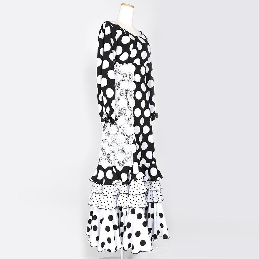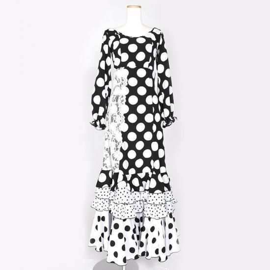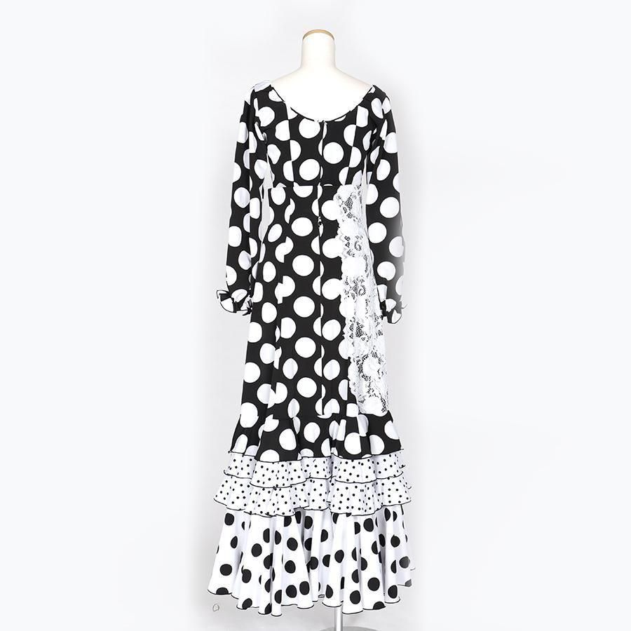 MS5054 Uネックパフ・3段小フリルスカート2P ホワイト・ブラック水玉 M-100 <☆1点もの☆>【lunares】