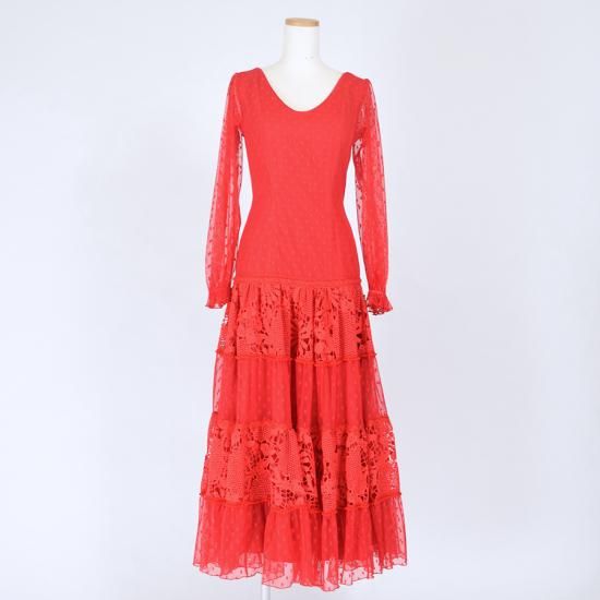 MT2044 ティアード4段ワンピース<bergenia>レッドレース S-135<☆1点もの☆>