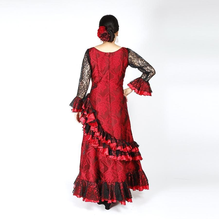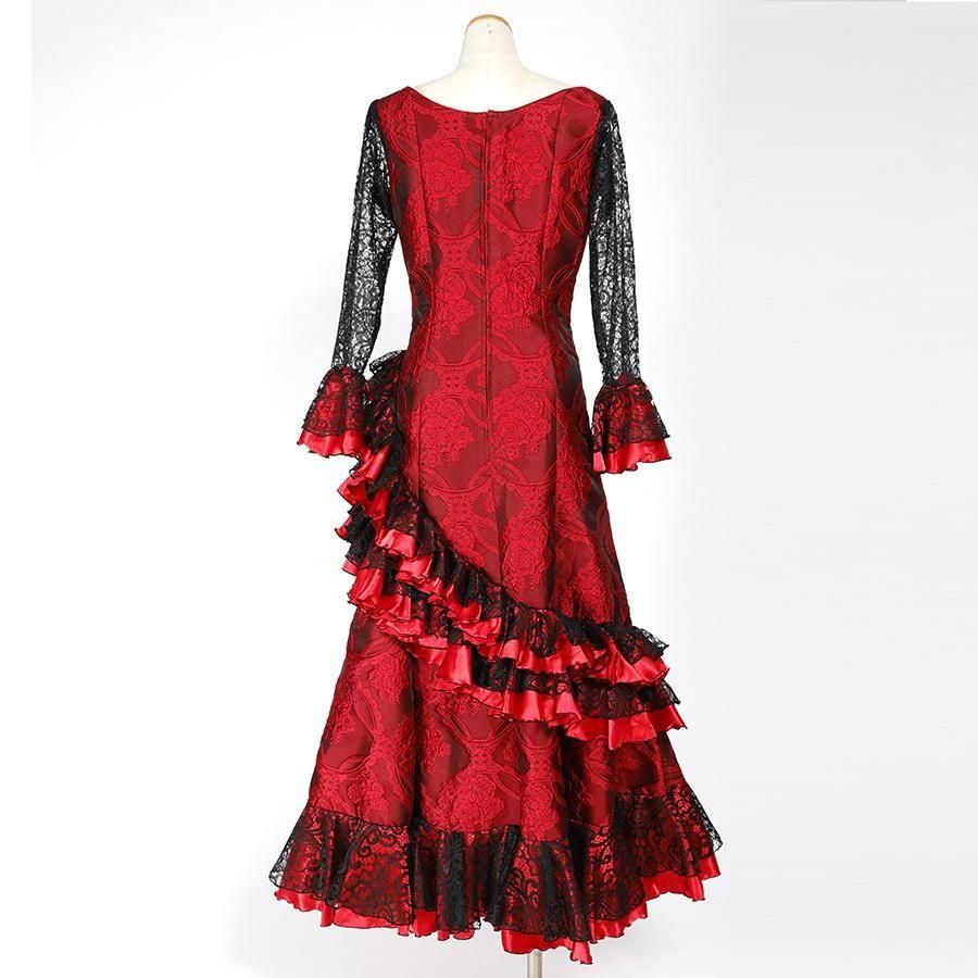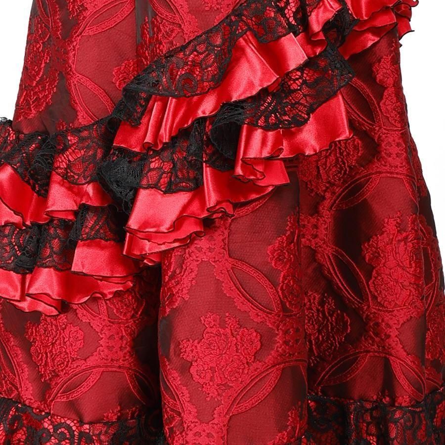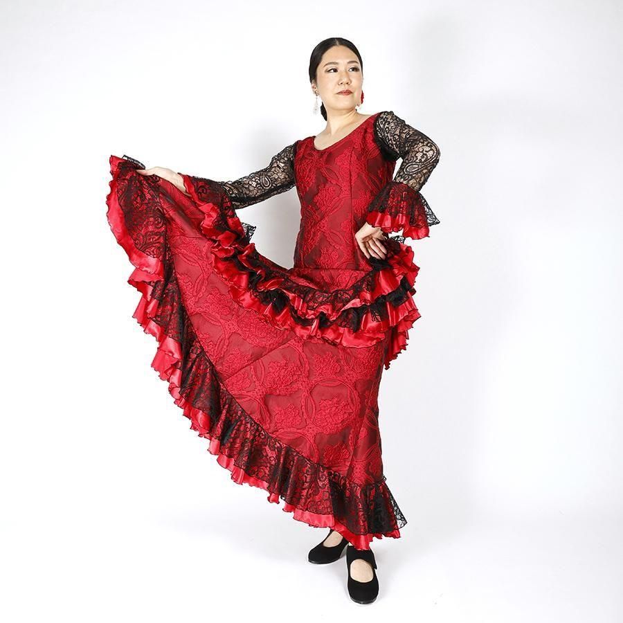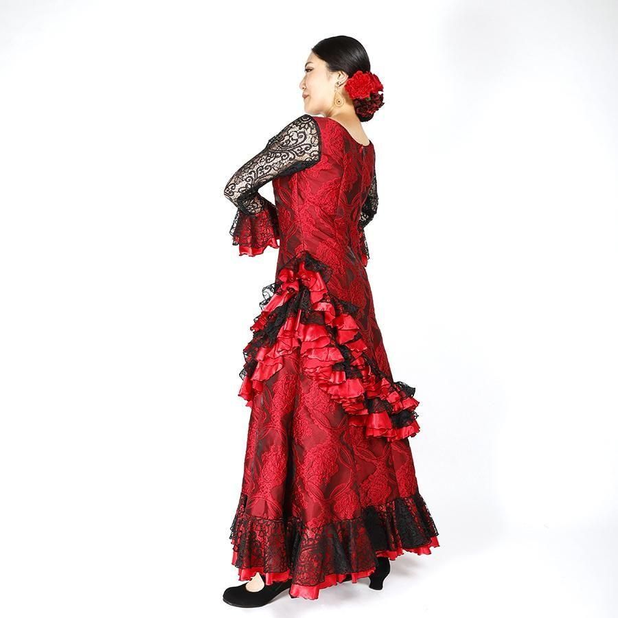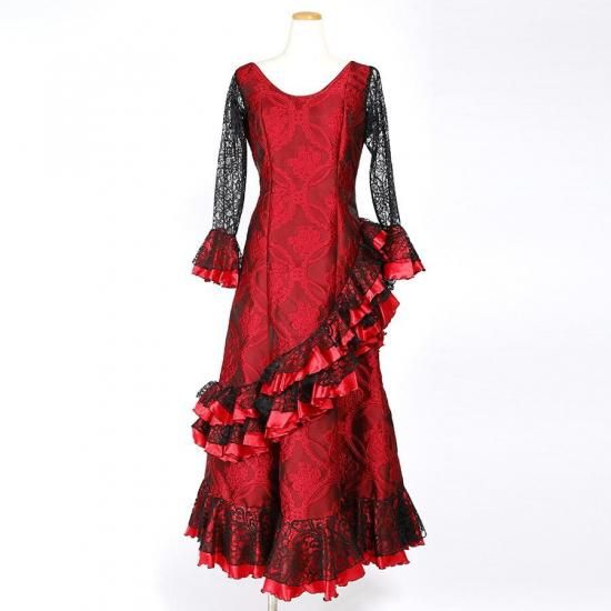 MT6010 斜め2段フリルワンピース<frangipani>レッド・ブラック<☆1点もの☆> L-140