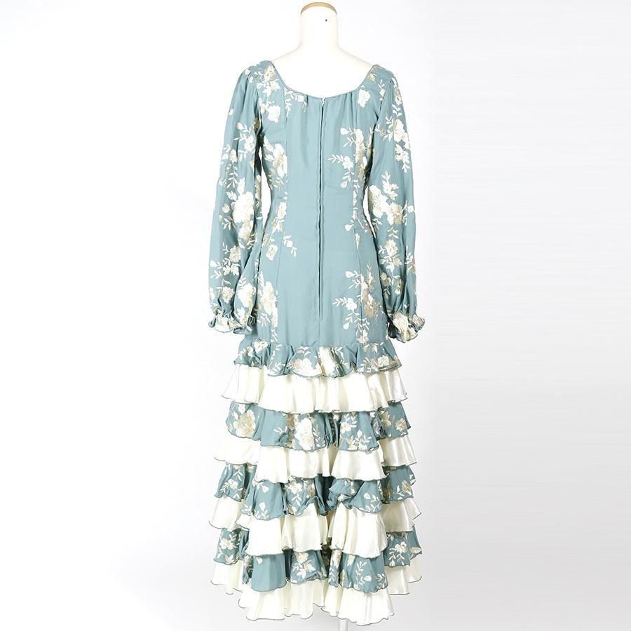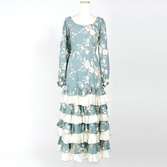 MT5011 8段フリルワンピース<geranio>ライトグリーン・アイボリー刺繍<☆1点もの☆> L-140