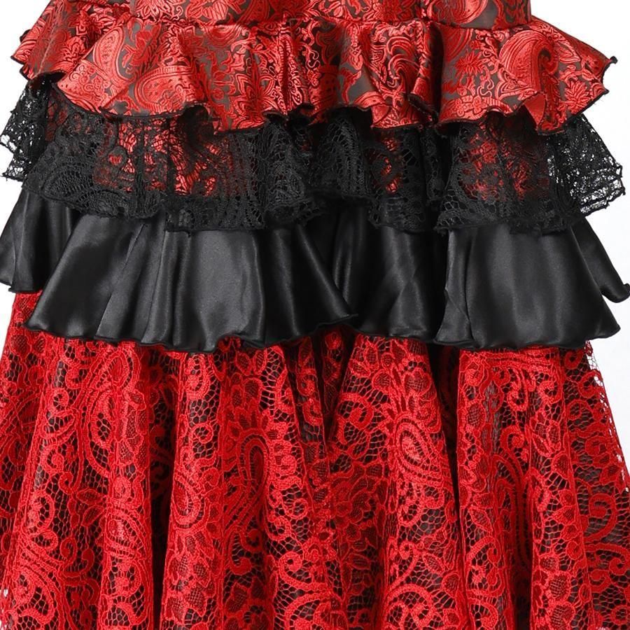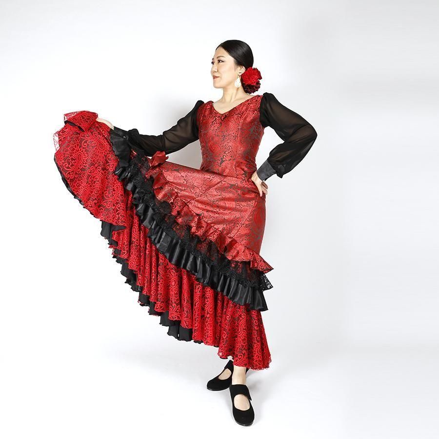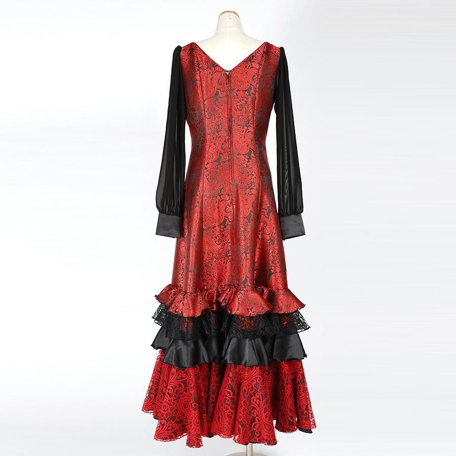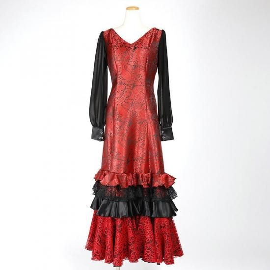• MT6010 斜め2段フリルワンピース<frangipani>レッド・ブラック<☆1点もの☆> L-140