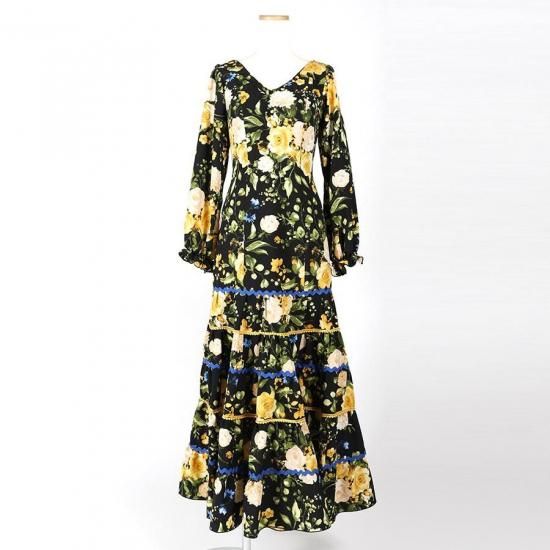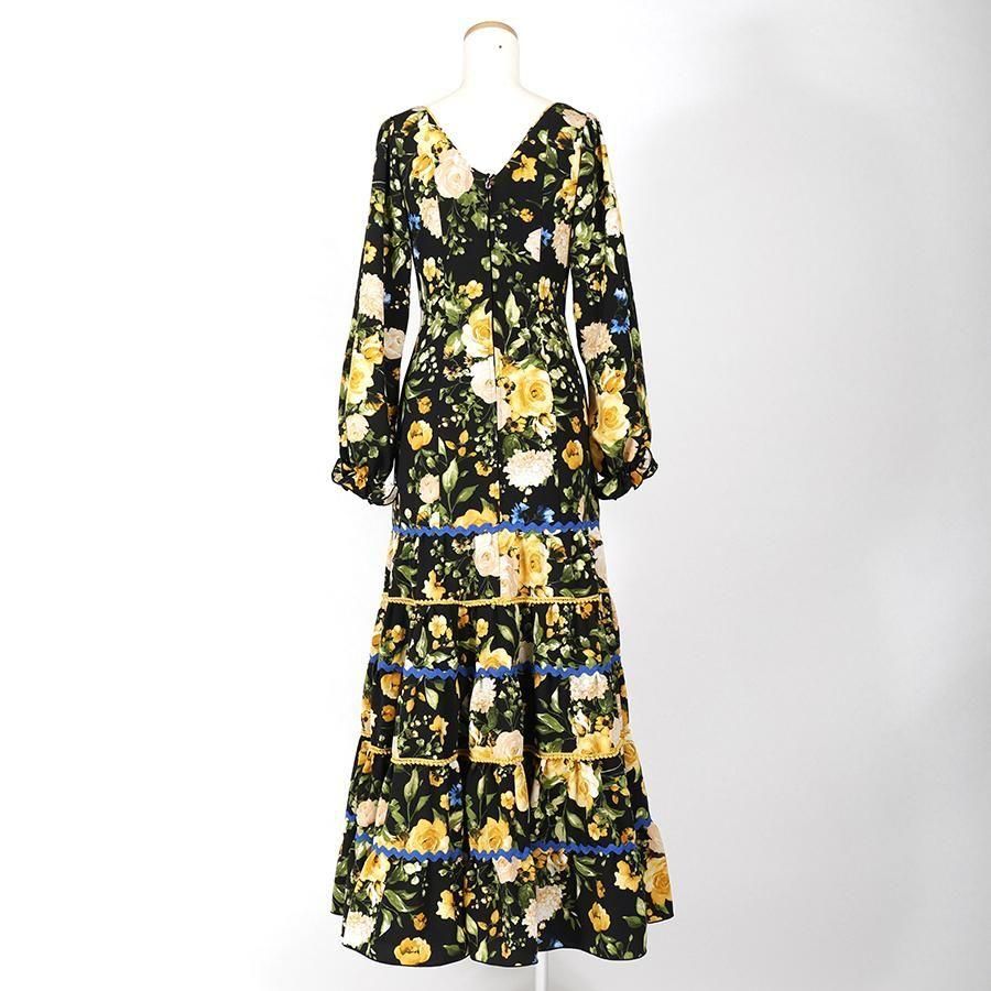 MT2041 ティアードワンピース<ipomea> ブラック・イエロー花柄<☆1点もの☆>M-140