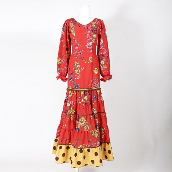 MT2041 ティアードワンピース<ipomea>レッド花柄<☆1点もの☆>S-140
