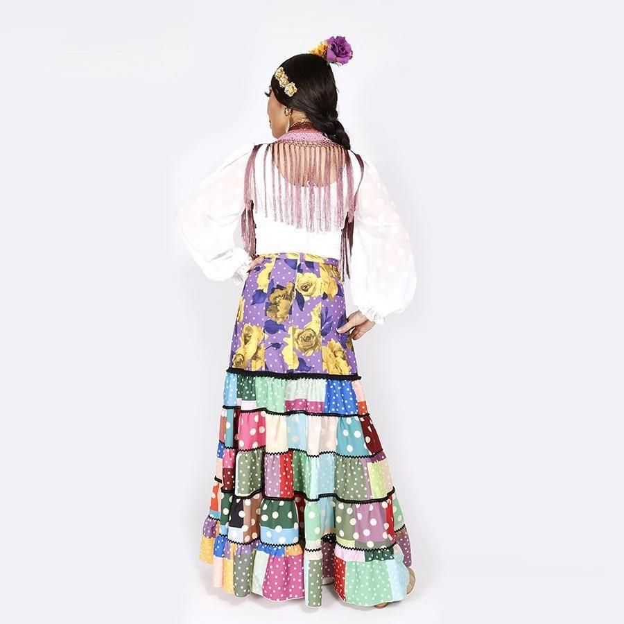 MF2011ティアードスカート<lantana >パープル花柄・ライトブルー☆1点もの☆>M-100