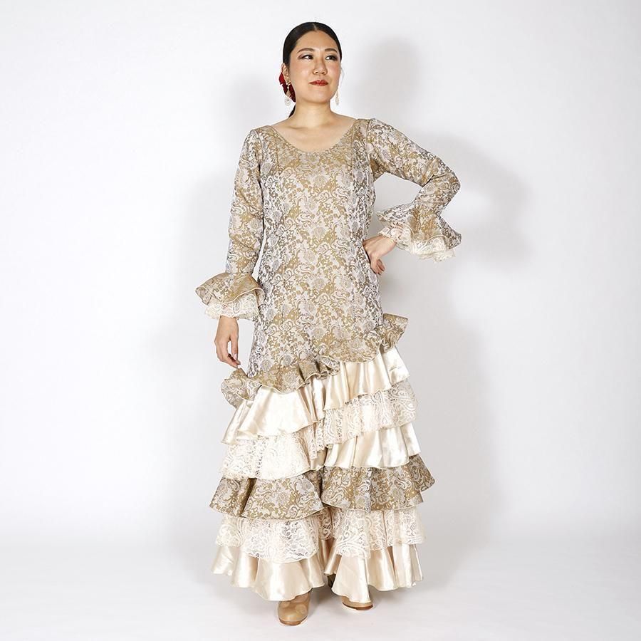 MT3031 7段斜めフリルワンピース<margarita>ベージュ・アイボリー<☆1点もの☆>2L-140