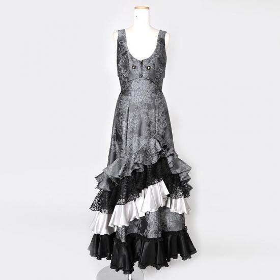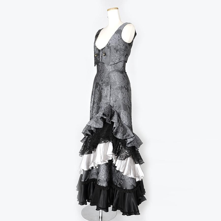 MS1033 ベスト・前上がり4段フリル2P グレー・ブラック M-100<☆1点もの☆>